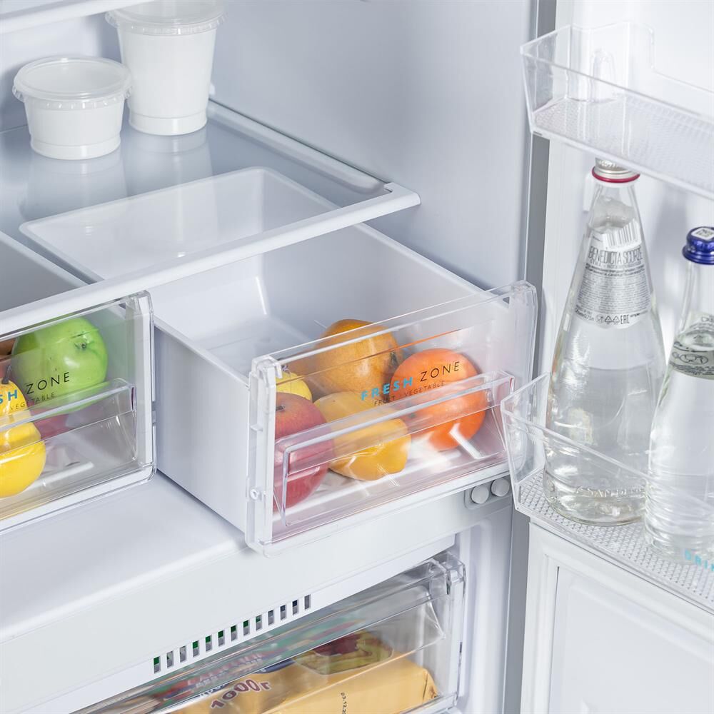 Двухкамерный холодильник с нижней морозильной камерой • цвет Белый • LED освещение • автоматическое оттаивание • механическое управление • габариты 145x58x62см • объем 240/180/60л