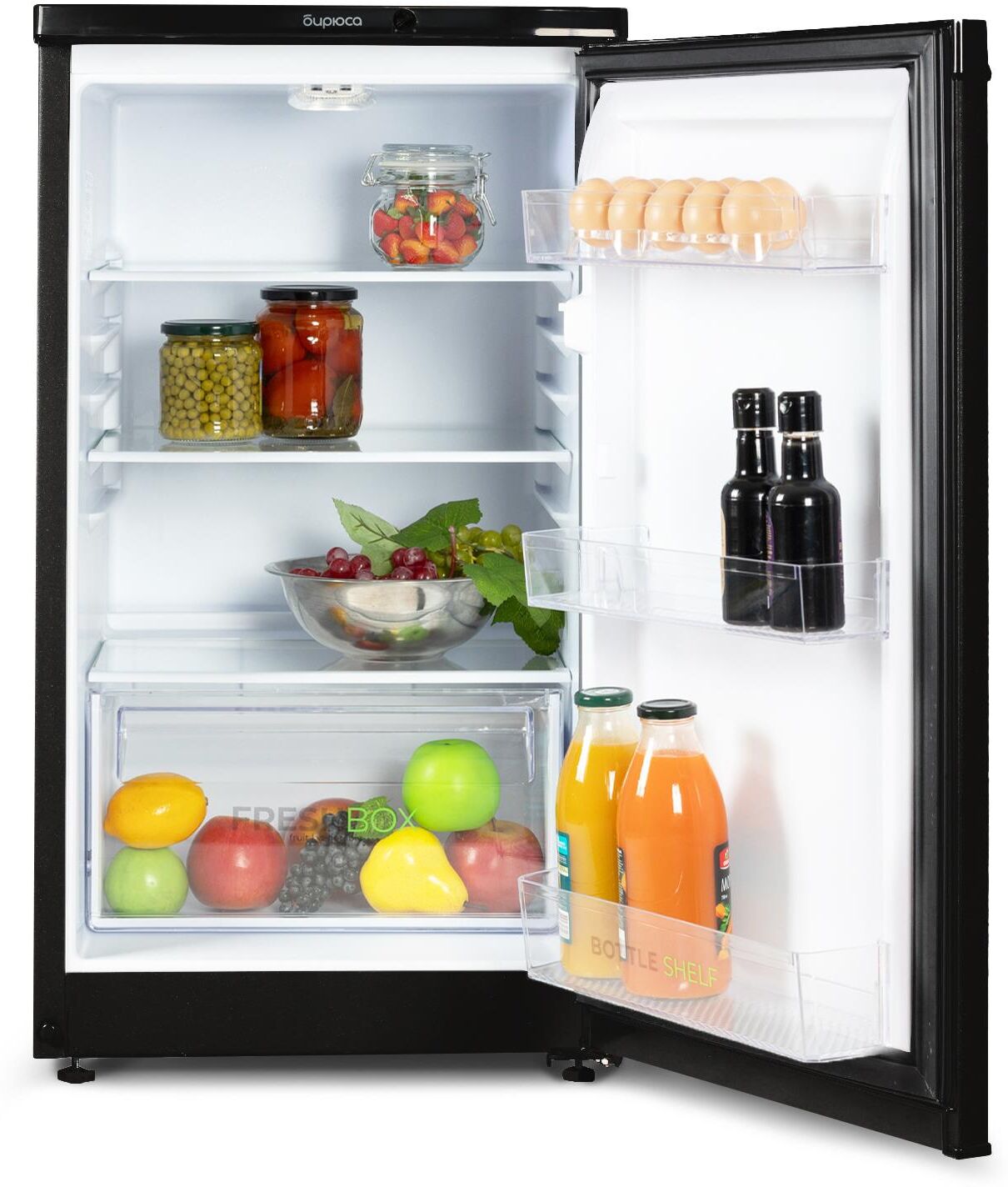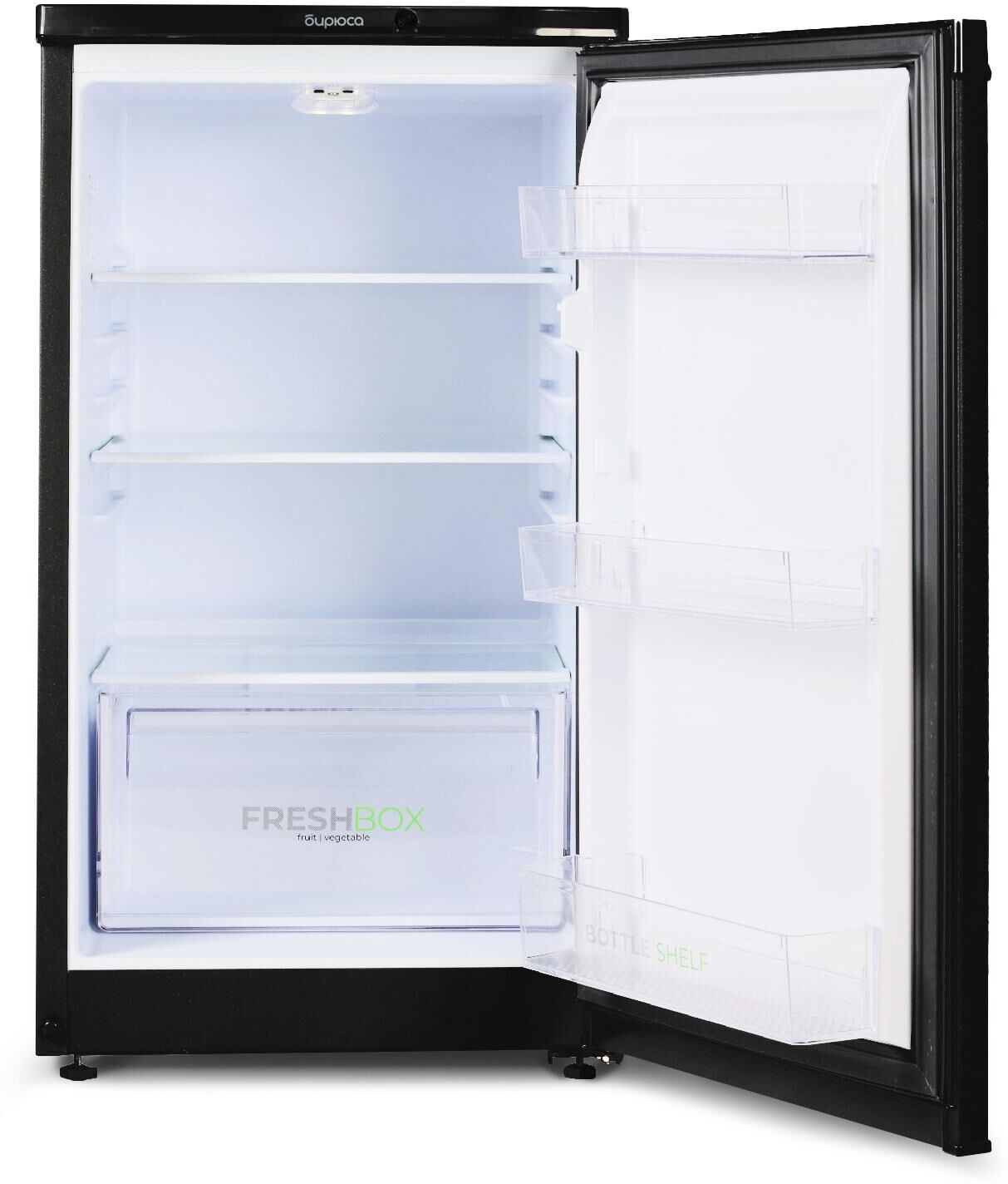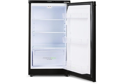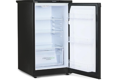 Узкий однокамерный холодильник без морозильного отделения; Габариты (ВхШхГ): 87x48x60,5см; Цвет: Черный; Управление Механическое; Освещение: LED; Общий объем, л: 115; Объем холодильной камеры, л: 115; Количество камер: 1; Количество компрессоров: 1; Суточный расход электроэнергии, при температуре окружающего воздуха 24°C, кВтч: 0.47; Климатический класс: N; Возможность перевешивания двери; Класс энергоэффективности: A; Максимальный уровень шума, дБ: 40