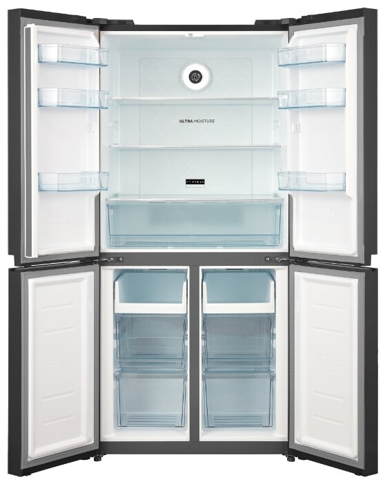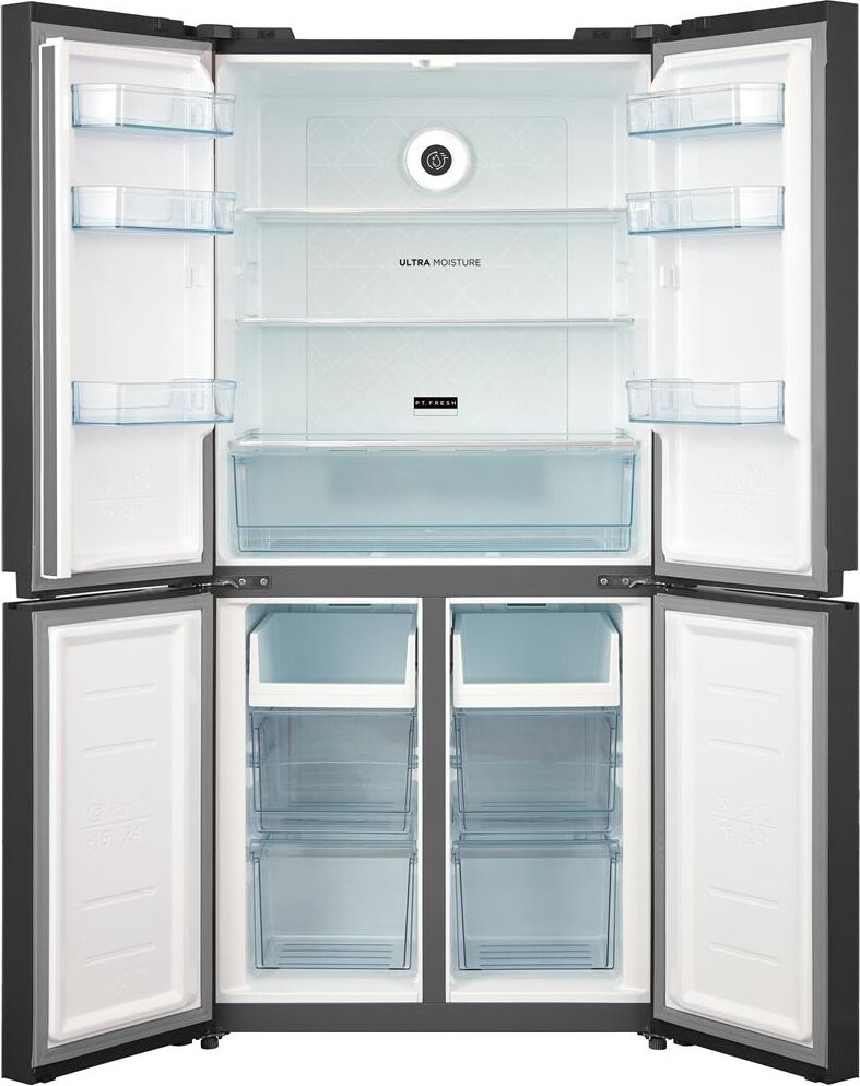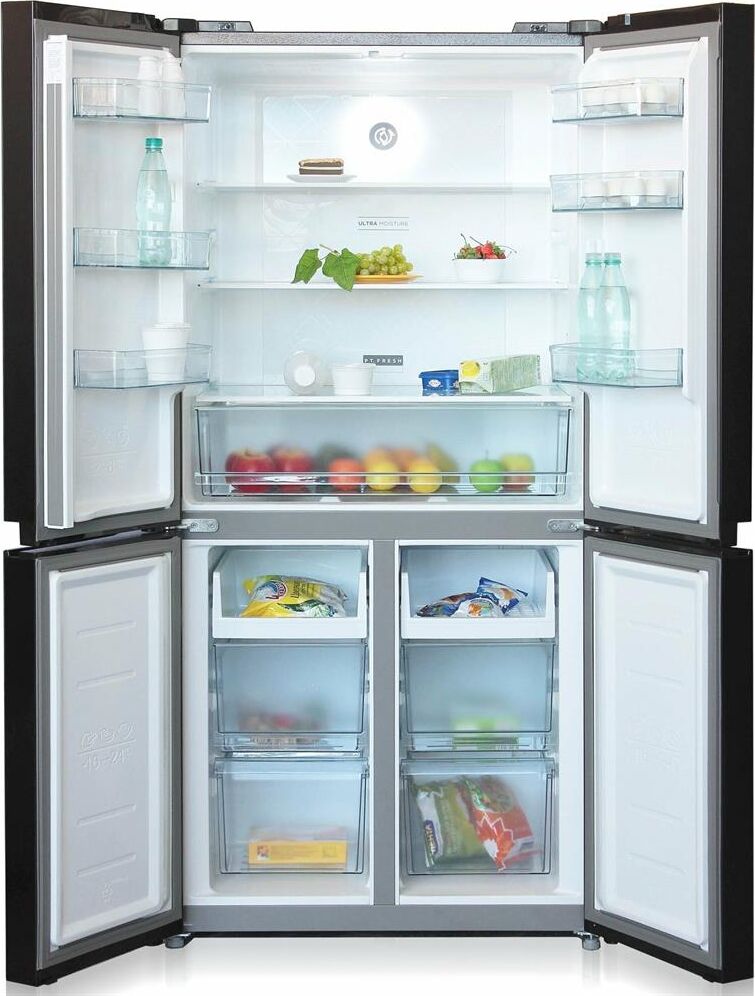 (ВхШхГ)177,5х83,3х65,5см.Цвет черное стекло.Полезный объем 456л.Объем х/о 303л.,объем м/о 153л.Тип управления LED-дисплей.Количество компрессоров 1 Корректированный уровень звуковой мощности (не более), дБа 42.Хладагент R-600a.Номинальная потребляемая мощность, Вт170.Потребление энергии при температуре окружающего воздуха 25°C (не более), кВт*ч/24ч 1.Класс энергетической эффективности A.Температура в отделении для хранения свежих пищевых продуктов, °C от 2 до 8.Температура в морозильном отделении (не более), °C -18.Встроенная ручка.Система Full No Frost.Климатический класс, температура окружающего воздуха ST,SN,N,T +16...+43°C.Освещение LED.Система суперохлаждение.Система суперзаморозка.Защита от детей.