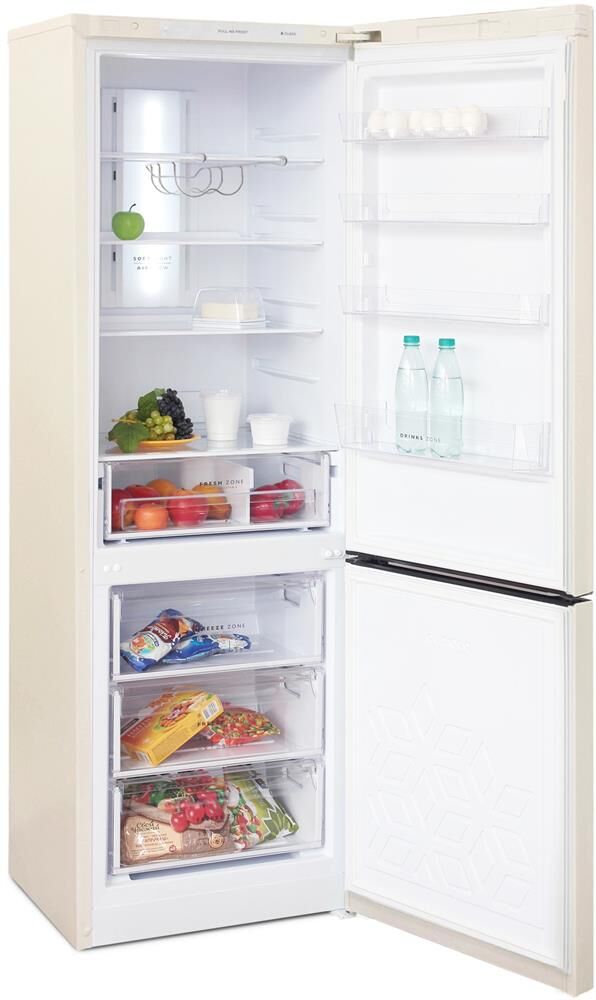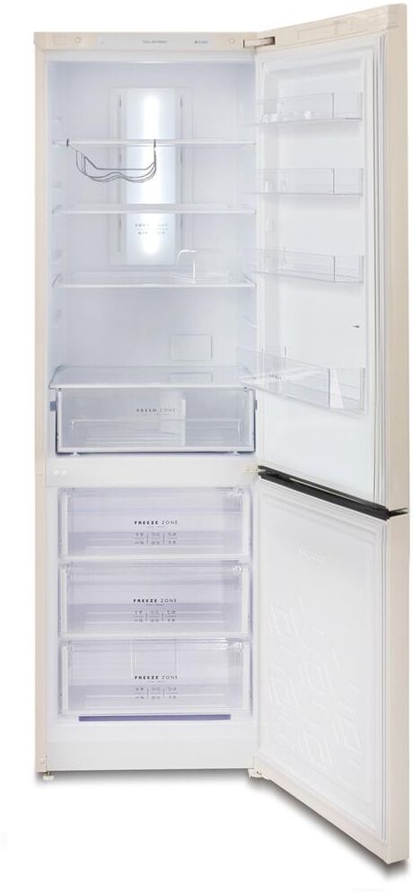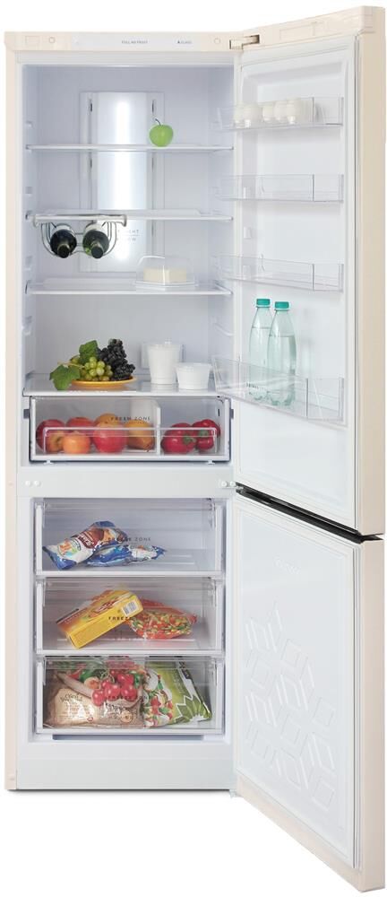 Двухкамерный холодильник с нижней морозильной камерой с системой Full No Frost с дисплеем на двери • габариты 190х60х62,5см • объем 340/240/100л • цвет Бежевый • LED дисплей на двери • система охлаждения Multi Air Flow • регулировка влажности Humidity control • единая зона для овощей и фруктов Fresh Zone с разделителем • полка для бутылок, масленка • LED освещение • электронное управление •