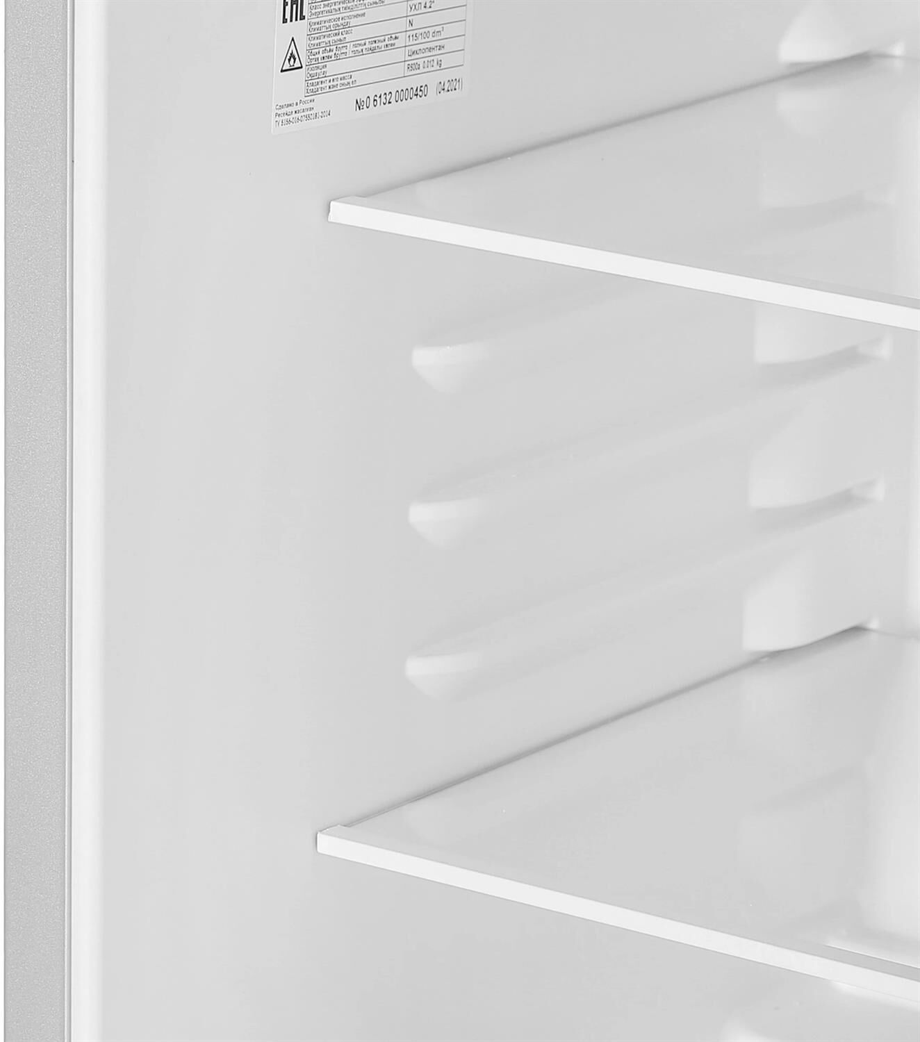 Цвет Металлик Общий объем, л 115 Объем холодильной камеры, л 115 Количество камер 1 Расположение морозильной камеры Отсутствует Управление Механическое Количество компрессоров 1 Суточный расход электроэнергии, при температуре окружающего воздуха 24°C, кВтч 0.47 Климатический класс N Возможность перевешивания двери Да Класс энергоэффективности A Гарантийный срок, г 3 Максимальный уровень шума, дБ 40 Габариты Высота, см 86.5 Ширина, см 48 Глубина, см 60.5 Вес, кг 27 Холодильная камера Количество полок в холодильном отделении 3 Температура в отделении для хранения свежих пищевых продуктов От 0 до 8 °C Материал полок стекло/пластик Оттаивание холодильной камеры автоматическое Количество ящиков в холодильном отделении 1 Другие функции и особенности Освещение LED Режим "Быстрая заморозка" Нет Режим суперохлаждения Нет Сигнализация повышения температуры в морозильной камере Нет Инверторный компрессор Нет