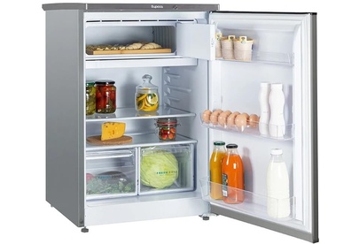 Однокамерный холодильник с морозильным отделением • цвет металлик • LED освещение • механическое управление • класс энергоэффективности А+ • габариты 85x58x62см • объем 150/116/34л