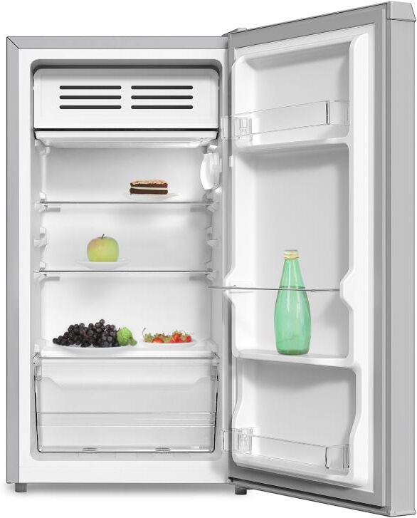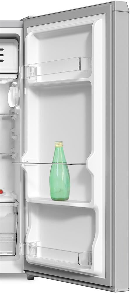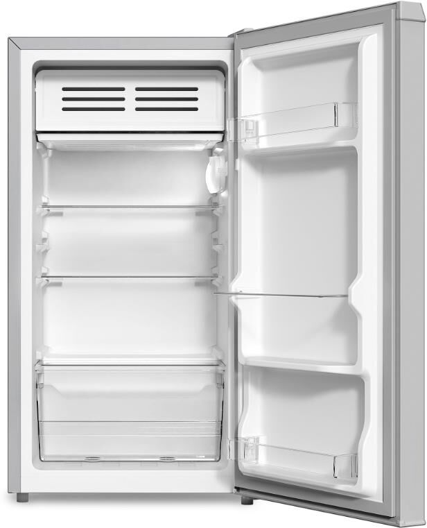 • габариты 85x44,4x45,6см • цвет металлик • объем 83л • механическое управление • класс энергоэффективности А+ • ящик для овощей и фруктов • освещение Компактный холодильник с отделением для быстрого охлаждения напитков * Количество компрессоров 1 * Суточный расход электроэнергии, при температуре окружающего воздуха 24°C, кВтч 0.3 * Климатический класс SN,N,ST,T * Возможность перевешивания двери * Количество полок в холодильном отделении 3 * Температура в отделении для хранения свежих пищевых продуктов От 2 до 8 °C * Материал полок cтекло * Оттаивание холодильной камеры ручное *