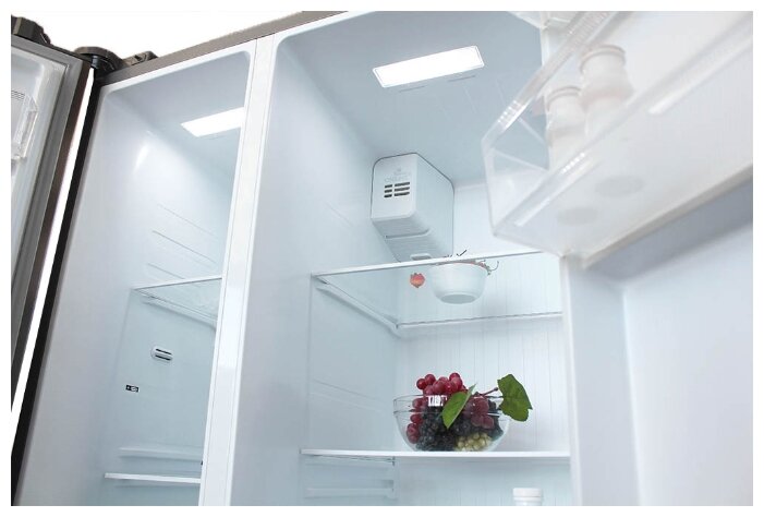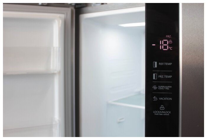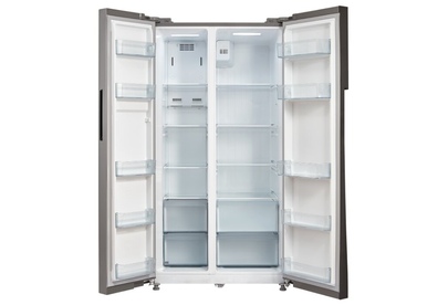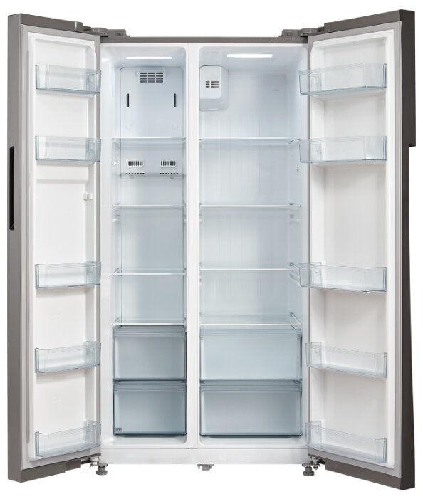 Холодильник Side-by-Side с системой Full No Frost. Цветовое исполнение нержавеющая сталь. Номинальный полезный объем, дм3 510. Номинальный полезный объем холодильной камеры, дм3 335. Номинальный полезный морозильной камеры, дм3 175. Габаритные размеры (без/с упаковкой), мм (ВхШхГ) 1788х895х690/ 1868х955х755. Тип управления LED-дисплей. Количество компрессоров 1. Корректированный уровень звуковой мощности (не более), дБа 43. Класс энергетической эффективности A+. Климатический класс, температура окружающего воздуха ST,SN,N +16...+38°C. Освещение LED. Система суперохлаждение. Система суперзаморозка. Режим отпуск. Защита от детей.