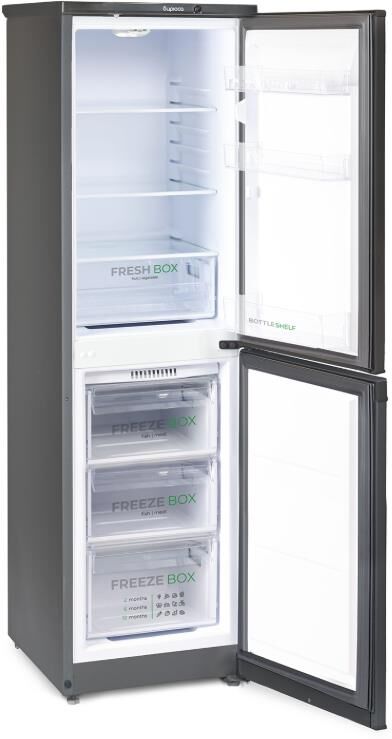 Аналог Бирюса W120 205л матовый графит. Габариты (ВхШхГ) 165х48х60,5см. Общий объем: 205л; Холодильная камера:125л; Морозильная камера: 80л.; Количество камер: 2; Расположение морозильной камеры: Нижнее; Компрессор: 1; Управление: механическое; Температура в режиме хранения в морозильной камере (отделение "две звезды"): не выше,°C: -18; Освещение: LED; Класс энергоэффективности: A; Ручная разморозка морозильной камеры; Количество ящиков в морозильном отделении: 3; Перенавешиваемые дверцы; Уровень шума: 40дБ; Цвет: Матовый графит