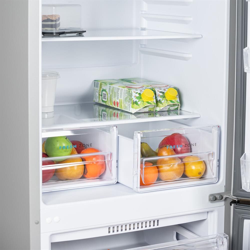 Двухкамерный холодильник с нижней морозильной камерой • цвет Матовый графит • LED освещение • автоматическое оттаивание • механическое управление • габариты 145x58x62см • объем 240/180/60л