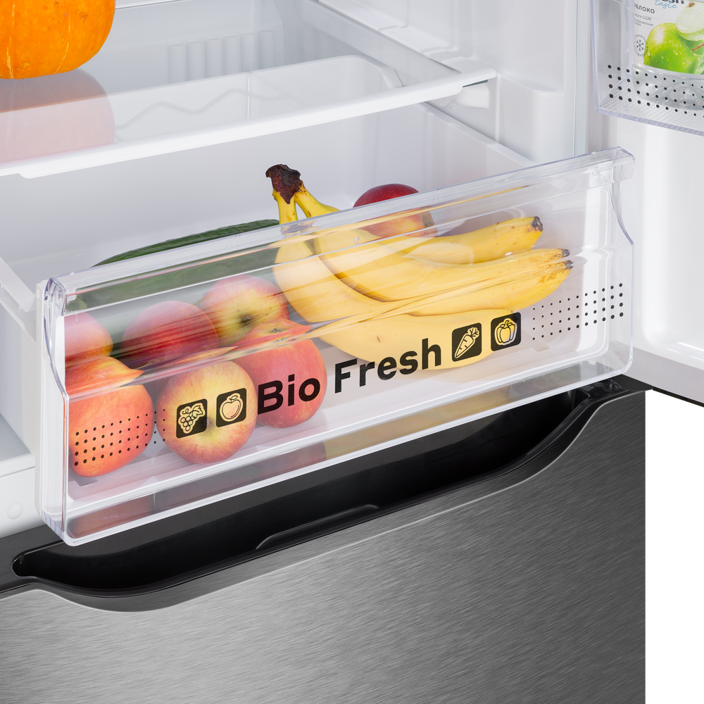 Двухкамерный холодильник Maunfeld MFF187NFIX10 — это высокотехнологичное устройство, созданное для обеспечения идеальных условий хранения продуктов. Произведенный в Узбекистане, этот прибор сочетает в себе качество, надежность и стильный дизайн. Он отличается своей эстетикой и функциональностью, благодаря чему станет идеальным дополнением для любой кухни. Основное внимание привлекает его современный и элегантный внешний вид. Корпус выполнен из нержавеющей стали, что придает ему привлекательный и современный вид. Ширина устройства составляет 59.5 см, глубина — 67.6 см, а высота — 185.8 см, что делает его достаточно вместительным для хранения большого количества продуктов. Внутреннее пространство вмещает 330 литров, из которых 232 литра отведено под холодильное отделение и 98 литров под морозильное. Это позволяет хранить большое количество продуктов, не беспокоясь о их свежести и безопасности. Уникальность этой техники заключается в ее функциональности. Она оснащена инверторным ко