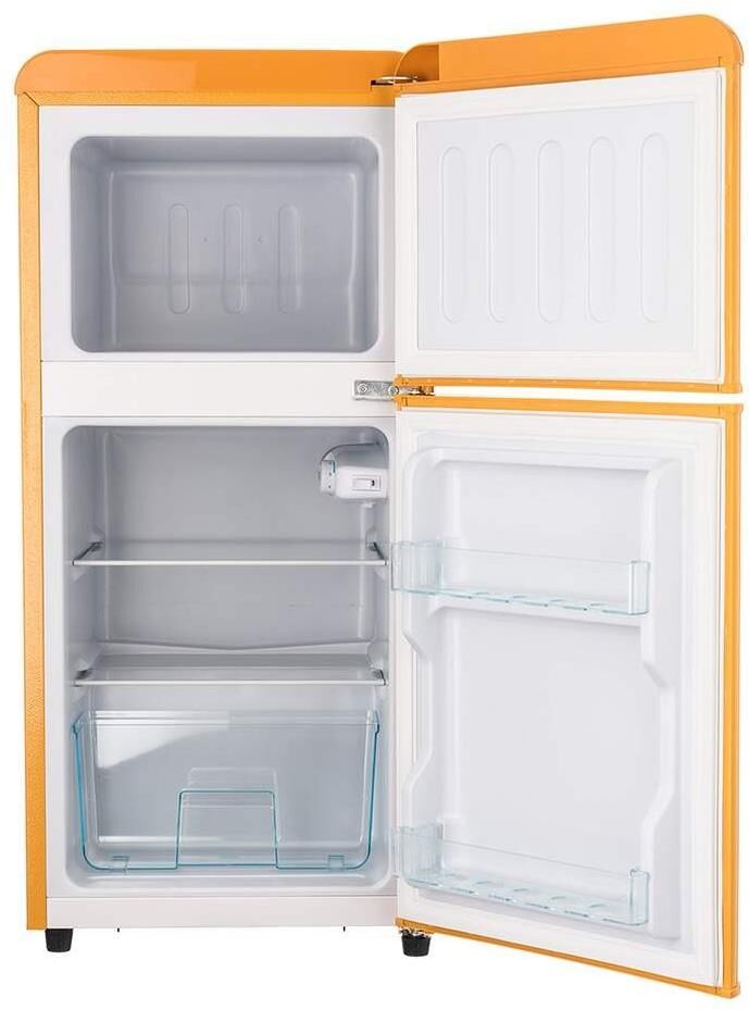 Холодильник Harper HRF-T120M – это не только функциональный, но и стильный элемент для вашей кухни с классом электропотребления A+. Harper HRF-T120M поставляется в 4х разных цветовых исполнениях: красный, голубой, оранжевый и классический белый. Новинка имеет компактные размеры и простое механическое управление. Внутри есть все необходимые элементы: практичные стеклянные полки, отдельные полки для яиц, бутылок и овощей. Морозильная (38 литров) и холодильная (80 литров) камеры холодильника – раздельные. Класс энергопотребления: А+ Тип: мини-холодильник Энергопотребление в год: 165.7 кВтч Общий объем: 118 л Количество камер: 2 Объем холодильного отделения: 80 л. Объем морозильного отделения: 38 л. Минимальная температура: -18° С Уровень шума: 43 дБ Тип управления: механический Подсветка: да Разморозка: ручная Хладогент: R600A Масса хладогента: 21 гр. Материал полок: стекло Длина шнура питания: 180 см. Цвет: оранжевый Габариты (ШхВхГ): 400х895х420 мм. Вес: 16 кг. Вес с упаковкой: 17 кг. Габариты упаковки (ШхВхГ)
