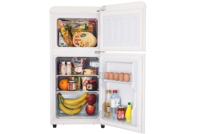 Холодильник Harper HRF-T120M – это не только функциональный, но и стильный элемент для вашей кухни с классом электропотребления A+. Harper HRF-T120M поставляется в 4х разных цветовых исполнениях: красный, голубой, оранжевый и классический белый. Новинка имеет компактные размеры и простое механическое управление. Внутри есть все необходимые элементы: практичные стеклянные полки, отдельные полки для яиц, бутылок и овощей. Морозильная (38 литров) и холодильная (80 литров) камеры холодильника – раздельные. Класс энергопотребления: А+ Тип: мини-холодильник Энергопотребление в год: 165.7 кВтч Общий объем: 118 л Количество камер: 2 Объем холодильного отделения: 80 л. Объем морозильного отделения: 38 л. Минимальная температура: -18° С Уровень шума: 43 дБ Тип управления: механический Подсветка: да Разморозка: ручная Хладогент: R600A Масса хладогента: 21 гр. Материал полок: стекло Длина шнура питания: 180 см. Цвет: белый Габариты (ШхВхГ): 400х895х420 мм. Вес: 16 кг. Вес с упаковкой: 17 кг. Габариты упаковки (ШхВхГ): 47