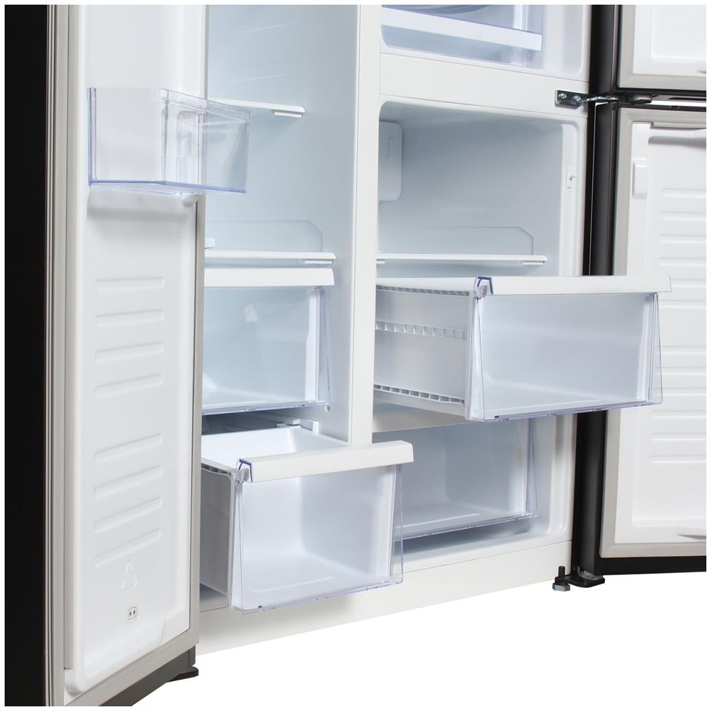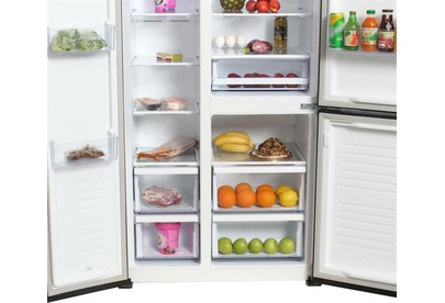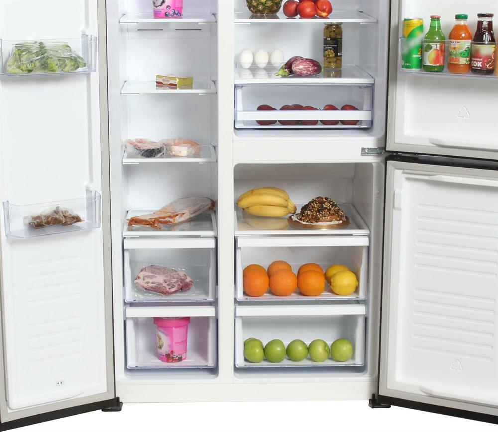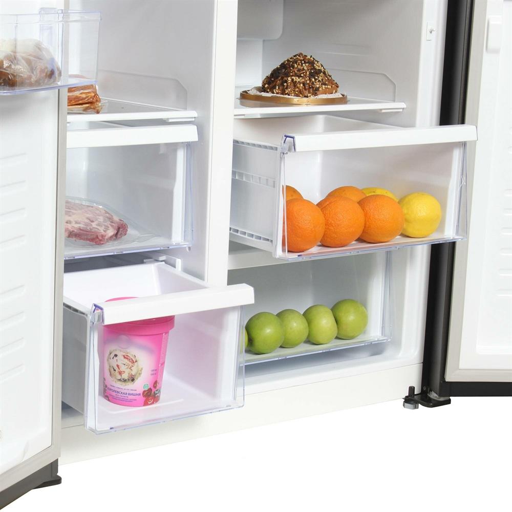 Количество дверей 3 шт Количество дополнительных отделений 1 шт Тип компрессора инверторный Полезный объем дополнительных камер 106 л Хладагент R600a/80g Общий объем холодильника 529 л Полезный объем холодильника 459 л Полезный объем холодильной камеры 186 л Полезный объем морозильной камеры 167 л Количество камер трехкамерный Расположение морозильной камеры сбоку (Side by Side) Тип размораживания холодильной камеры Total No Frost Тип размораживания морозильной камеры Total No Frost Количество компрессоров 1 Климатический класс N, SN, T, ST Класс энергопотребления A+ Потребление энергии (кВт*ч / год) 438 Дисплей внешний Суперзаморозка Суперохлаждение Индикация температуры Индикация открытой двери Регулируемые по высоте ножки Защита от детей Количество полок в холодильной камере 4 Количество полок в морозильной камере 5 Материал полок закаленное стекло Количество ящиков в холодильной камере 3 Количество ящиков в морозильной камере 2 Вес 86 кг Цвет графит