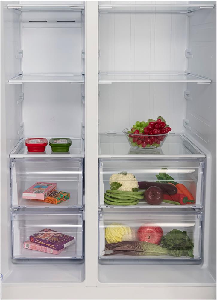 Хладагент R600a/80g Количество дверей 2 шт Тип компрессора инверторный Общий объем холодильника 663 л Полезный объем холодильника 612 л Полезный объем холодильной камеры 407 л Полезный объем морозильной камеры 205 л Количество камер двухкамерный Расположение морозильной камеры слева Тип размораживания холодильной камеры No Frost Тип размораживания морозильной камеры No Frost Количество компрессоров 1 Уровень шума 42 дБ Класс энергопотребления A++ Потребление энергии (кВт*ч / год) 347 Тип управления электронное Количество полок в холодильной камере 4 Количество полок в морозильной камере 4 Материал полок закаленное стекло Количество ящиков в холодильной камере 2 Количество ящиков в морозильной камере 2 Дисплей Суперзаморозка Суперохлаждение Индикация температуры Индикация открытой двери Система многопоточного охлаждения Регулируемые по высоте ножки Защита от детей Вес товара95 кг Цвет белое стекло Габариты упаковки (ед) ДхШхВ0.79x0.96x1.85 м Срок гарантии 24 мес.