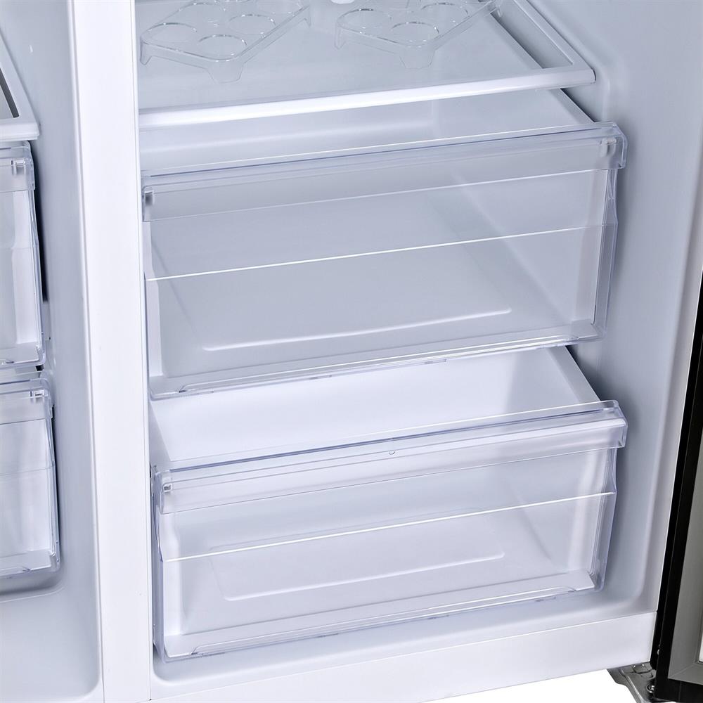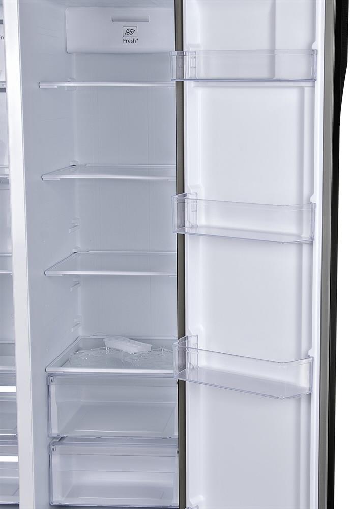 Хладагент R600a/80g Количество дверей 2 шт Тип компрессора инверторный Общий объем холодильника 663 л Полезный объем холодильника 612 л Полезный объем холодильной камеры 407 л Полезный объем морозильной камеры 205 л Количество камер двухкамерный Расположение морозильной камеры слева Тип размораживания холодильной камеры No Frost Тип размораживания морозильной камеры No Frost Количество компрессоров 1 Уровень шума 42 дБ Класс энергопотребления A++ Потребление энергии (кВт*ч / год) 347 Тип управления электронное Количество полок в холодильной камере 4 Количество полок в морозильной камере 4 Материал полокзакаленное стекло Количество ящиков в холодильной камере 2 Количество ящиков в морозильной камере 2 Дисплей Суперзаморозка Суперохлаждение Индикация температуры Индикация открытой двери Система многопоточного охлаждения Регулируемые по высоте ножки Защита от детей Вес товара95 кг Цвет черное стекло Габариты упаковки (ед) ДхШхВ0.79x0.96x1.85 м Срок гарантии 24 мес.