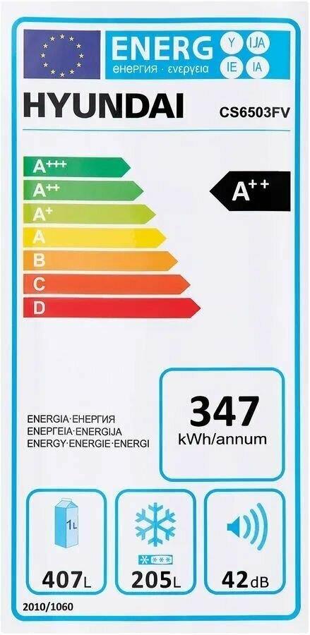 Холодильник HYUNDAI CS6503FV ЧЕРНОЕ СТЕКЛО