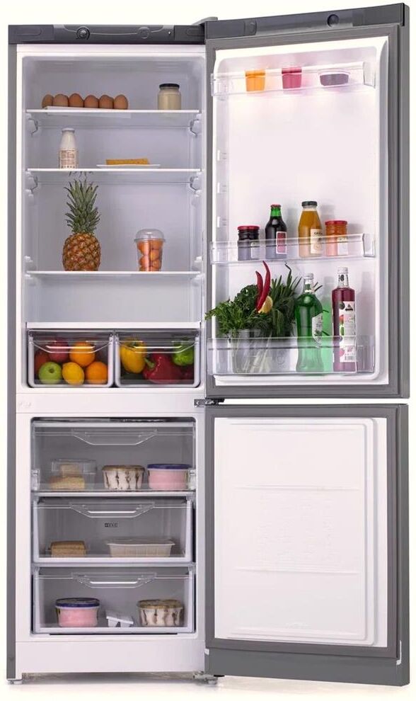 Система охлаждения Direct Cool, Технология Volt Stability, 1 компрессор, 2 ящика для хранения овощей и фруктов, 2 ящика в морозильной камере + полка с откидной крышкой, Класс энергопотребления – A, Потребление электроэнергии в сутки(кВт/24ч) - 0,94, Полезный объем(л) - 310 (223+87), Общий объем(л) - 332 (224+108), Возможность замораживания (кг/24ч) - 4, Время сохранения температуры без электроэнергии (ч) - 18, Климатический класс - N-ST, Размеры (ВхШхГ) (см) – 185x60x62, Цвет - серебристый