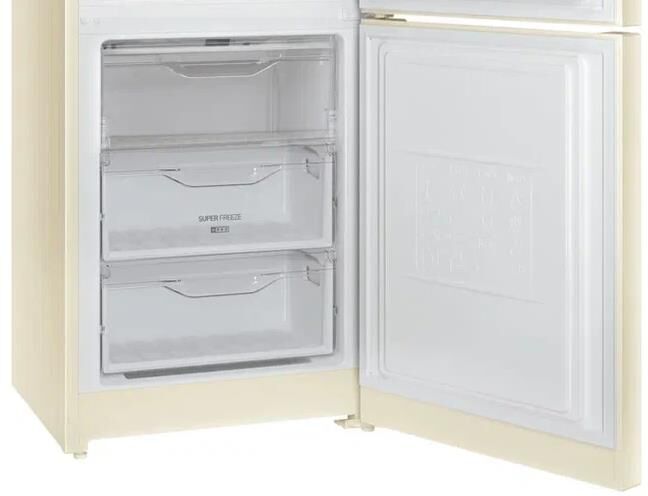 Система охлаждения Direct Cool, Технология Volt Stability, 1 компрессор, 2 ящика для хранения овощей и фруктов, 2 ящика в морозильной камере + полка с откидной крышкой, Класс энергопотребления – A, Потребление электроэнергии в сутки(кВт/24ч) - 0,97, Полезный объем(л) - 339 (252+87), Общий объем(л) - 361 (253+108), Возможность замораживания (кг/24ч) - 4, Время сохранения температуры без электроэнергии (ч) - 18, Климатический класс - N-ST, Размеры (ВхШхГ) (см) – 200x60x62, Цвет - бежевый