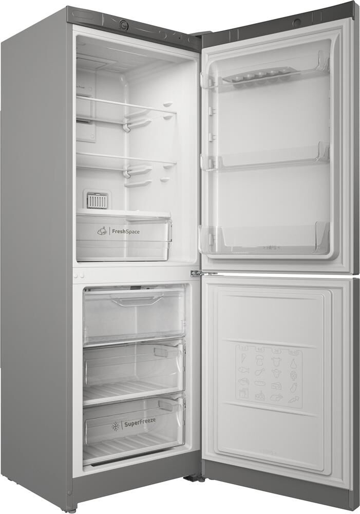 Система охлаждения: Total No Frost; 1 ящик для овощей и фруктов; подставка для яиц,; сверхпрочные полки (до 100 кг), LED освещение, фронтальная интегрированная ручка с нанесением TicTac; 10 лет гарантии на запчасти, класс энергопотребления - A; Потребление электроэнергии (кВт/24ч.) - 0,937; Общий полезный объем (л) - 256; Полезный объем холодильного отделения (л) - 181; Полезный объем морозильного отделения (л) - 75; Возможность замораживания (кг/24 ч.) - 3,5; Время сохранения температуры без электроэнергии (ч.) - 13; Климатический класс - N,ST; Размеры (ВхШхГ) (см) - 167x60x64; Цвет - Серебристый