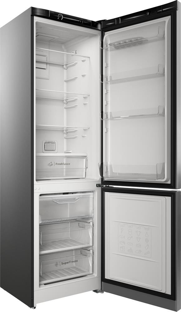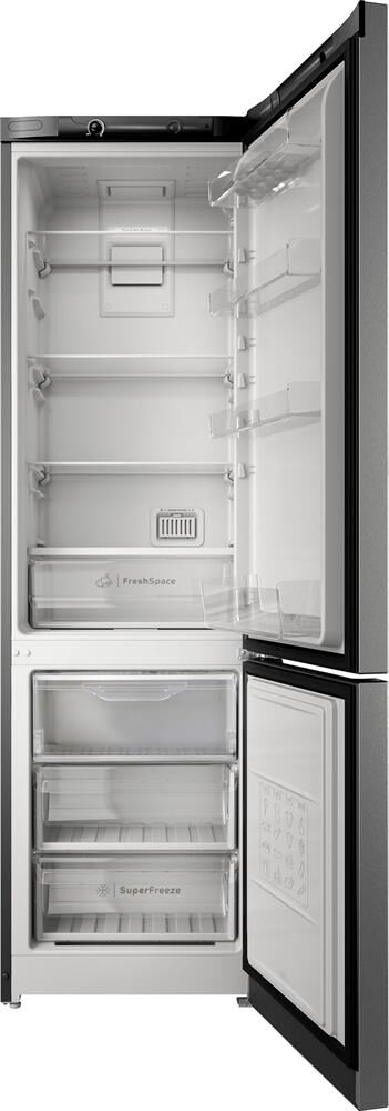 Система охлаждения: Total No Frost; 1 ящик для овощей и фруктов; подставка для яиц, сверхпрочные полки (до 100 кг), LED освещение, фронтальная интегрированная ручка с нанесением TicTac, 10 лет гарантии на запчасти; Класс энергопотребления - A; Потребление электроэнергии (кВт/24ч.) - 1,003; Общий полезный объем (л) - 324; Полезный объем холодильного отделения (л) - 249; Полезный объем морозильного отделения (л) - 75; Возможность замораживания (кг/24 ч.) - 3,5; Время сохранения температуры без электроэнергии (ч.) - 13; Климатический класс - N,ST; Размеры (ВхШхГ) (см) - 200x60x64; Цвет - Темно серый