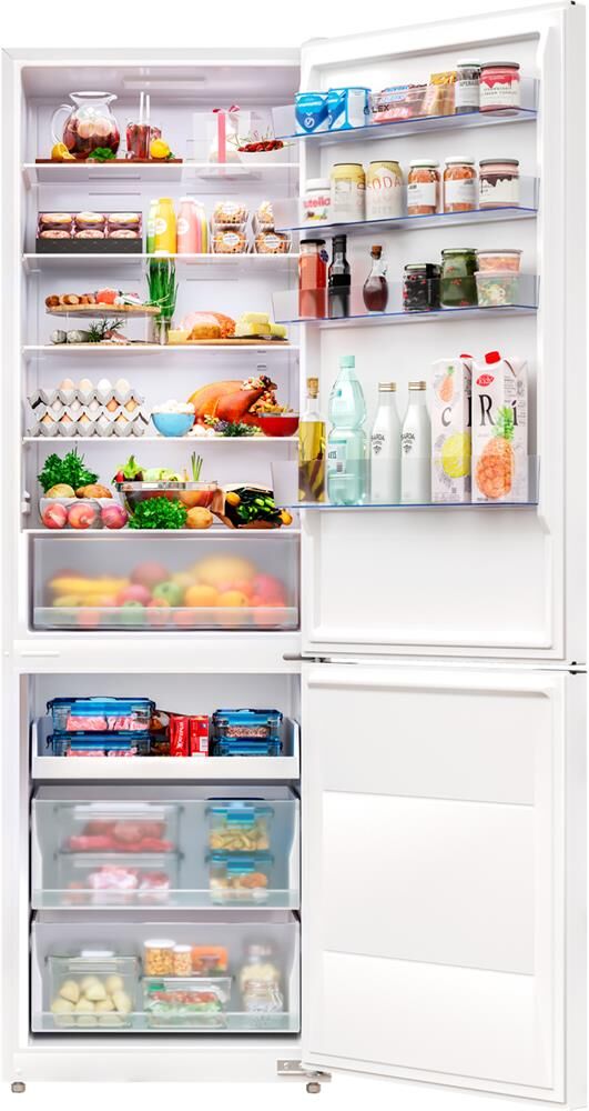 Размеры: высота (см): 201 ширина (см): 59.5 глубина (см): 68 Общий объем/ Полезный объем: Холодильника (л): -/456 Холодильной камеры (л): -/314 Морозильной камеры (л): -/142; Класс энергопотребления: A+ Климатический класс: SN-ST (от +10°С до +38°С); Количество компрессоров: 1; Годовое потребление энергии: 359.2 кВтч; Цвет: белый; Система Nо Frost (Frost Free, Ноу Фрост); Время сохранения холода при отключении электроэнергии: 10 ч; Мощность замораживания: 7 кг/сутки; Диапазон температур: -16...-24 °С; 2 ящика; Уровень шума: 42 дБ; Хладагент: R600a; Перевешиваемые двери; Длина сетевого кабеля: 170 см; Вес: 70 кг