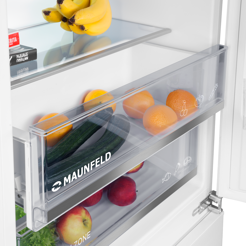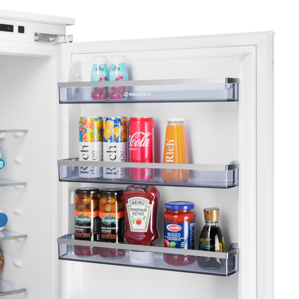 Холодильник Maunfeld MBF19369NFWGR LUX - это современное решение для хранения продуктов в домашних условиях. Прибор обладает двумя камерами и двумя дверями, что обеспечивает удобство использования и возможность организовать оптимальное хранение продуктов. Модель относится к классу энергопотребления A+, что делает ее энергоэффективной и экономичной в использовании. Общий объем холодильника составляет 341 литр, при этом полезный объем составляет 273 литра, что позволяет хранить большое количество продуктов. Объем холодильного отделения составляет 257 литров, а морозильного - 84 литра. Дизайн модели выполнен в белом цвете, что придает ей современный и стильный вид. Фасад изготовлен из эмали, что обеспечивает его долговечность и устойчивость к внешним воздействиям. Внутренняя подсветка осуществляется за счет светодиодного освещения, что делает процесс поиска необходимых продуктов быстрым и удобным. Холодильник оборудован системой NoFrost в морозильном и холодильном отделениях, что исключает необходим