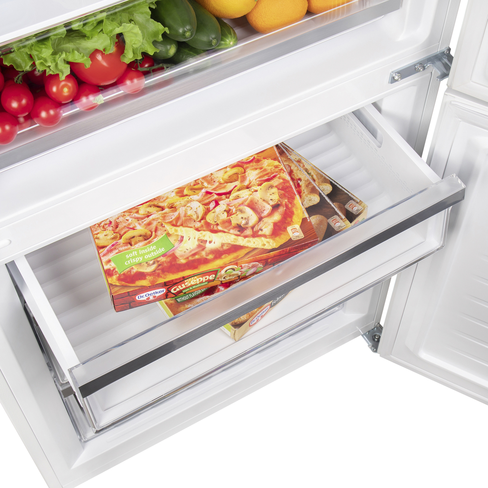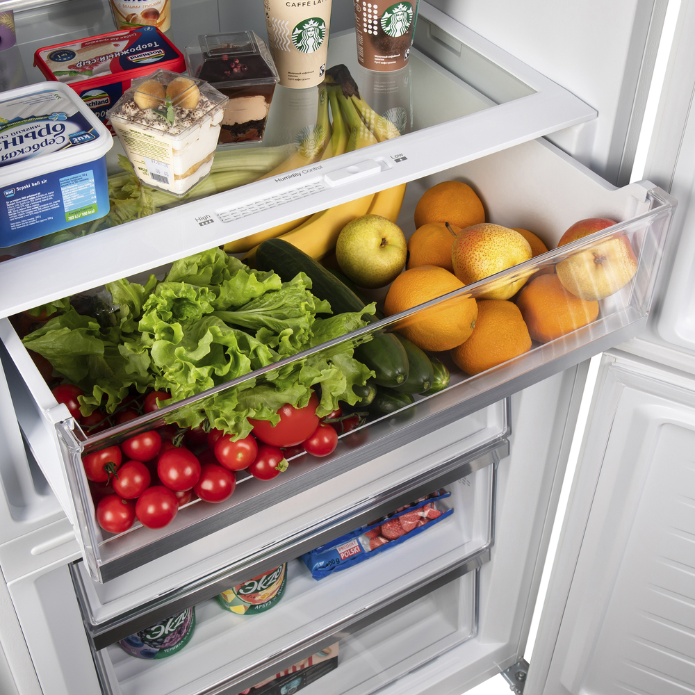 Холодильник Maunfeld MFF1857NFW — это великолепный прибор с широким набором функций и высокой производительностью, предназначенный для хранения продуктов питания с максимальным комфортом и свежестью. Высота 185.5 см и полезный объем двух отделений 432 л. Это позволяет хранить большое количество продуктов, что идеально подходит для семьи любого размера. Специальная система No Frost предотвращает образование льда и иней внутри морозилки, что упрощает уход за ним и обеспечивает равномерное охлаждение продуктов. Внутреннее освещение производится энергоэффективными светодиодными лампами, которые обеспечивают яркую и равномерную подсветку всего внутреннего пространства. Предусмотрены различные полки и ящики, которые обеспечивают удобное размещение продуктов питания, а также позволяют легко найти нужную упаковку. Высоту полок можно легко регулировать для оптимальной организации пространства. Функция быстрой заморозки позволяет быстро замораживать свежие продукты и сохранять их питатель