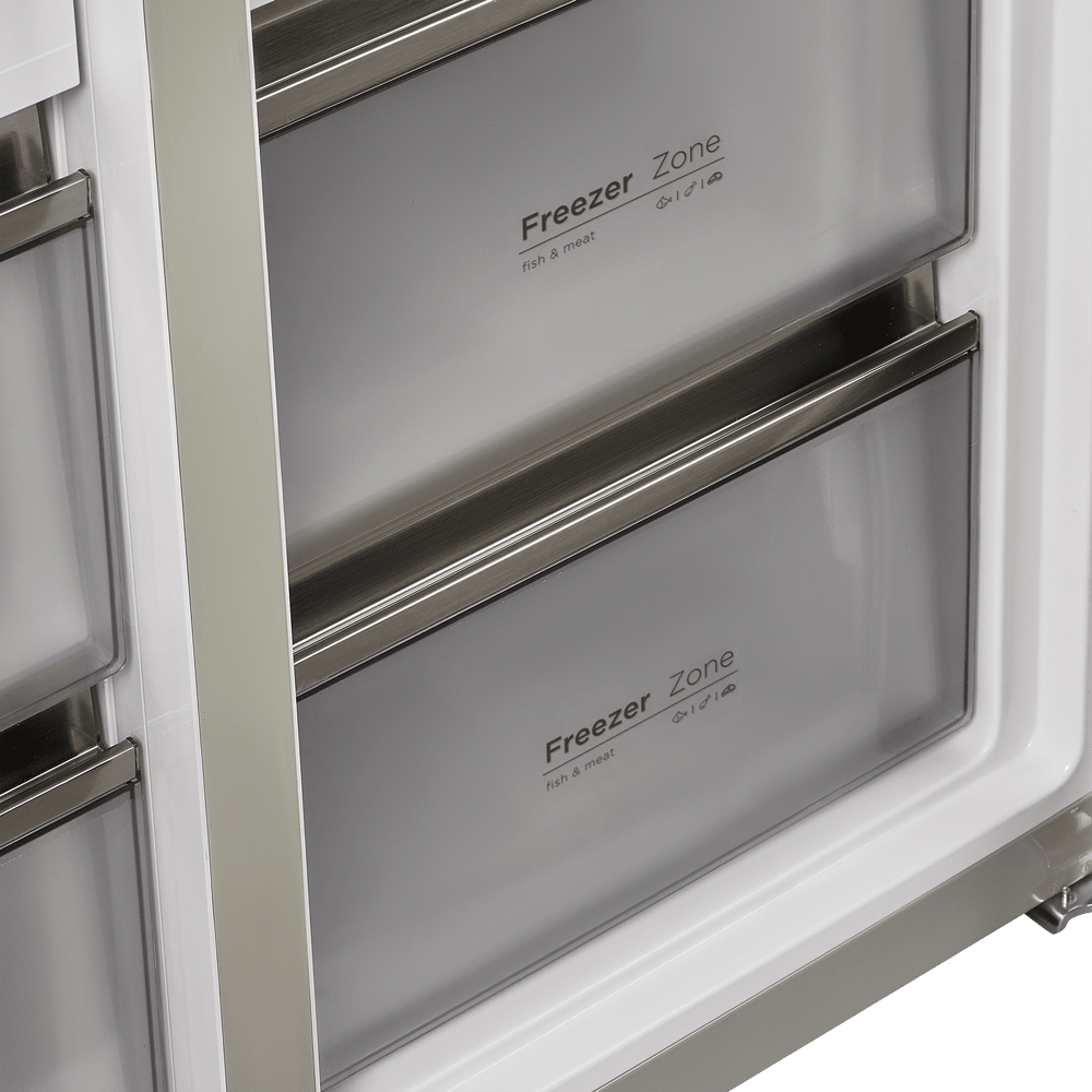 Холодильник с морозильной камерой Maunfeld MFF190NFDPW - это современная модель с высоким классом энергопотребления A++, что гарантирует эффективное использование энергии. Этот холодильник идеально подойдет для больших семей или тех, кто любит готовить и хранить много продуктов, благодаря его общему объему в 537 литров и полезному объему в 498 литров. Дизайн этого холодильника привлекает внимание своей элегантностью и функциональностью. Белый цвет корпуса из стали идеально впишется в любой интерьер кухни. Внутренняя подсветка на светодиодах обеспечивает яркое и равномерное освещение, что упрощает поиск нужных продуктов. Холодильник оснащен инверторным компрессором, что обеспечивает более тихую и долговечную работу прибора. Система NoFrost в холодильном и морозильном отделениях предотвращает образование инея и льда, что значительно облегчает уход за прибором. Также в холодильнике есть функция быстрой заморозки, что позволяет сохранить полезные свойства продуктов. Управление холодильником осуществл