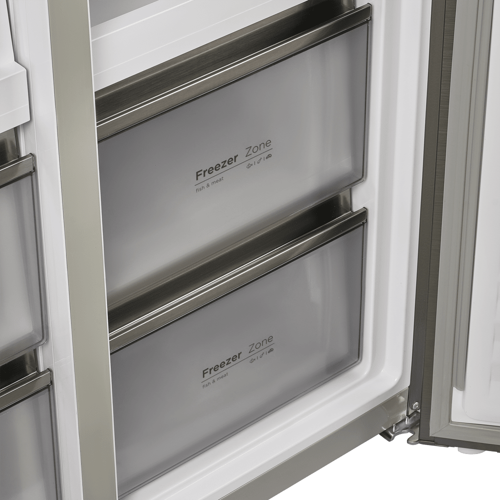 Холодильник Maunfeld MFF190NFDSX - это воплощение современного дизайна и продвинутых технологий, созданный для удовлетворения потребностей самых взыскательных пользователей. Стильное и элегантное исполнение в цвете нержавеющей стали придает модели изысканность и современный вид, что позволяет ей гармонично вписаться в любой интерьер. Кроме того, прочная стальная облицовка обеспечивает долговечность и устойчивость к повреждениям. Модель оснащена двумя камерами и четырьмя дверцами, что обеспечивает удобный доступ к продуктам и эффективное использование пространства. Общий объем холодильника составляет 537 литров, из которых 330 литров приходится на холодильное отделение и 168 литров - на морозильное. Такое разделение позволяет разместить большой объем продуктов и гарантирует их свежесть и сохранность. Эффективность и простота использования обеспечиваются благодаря современным функциям и особенностям. Система NoFrost предотвращает образование инея и мороза, что облегчает уход за устройством и продле
