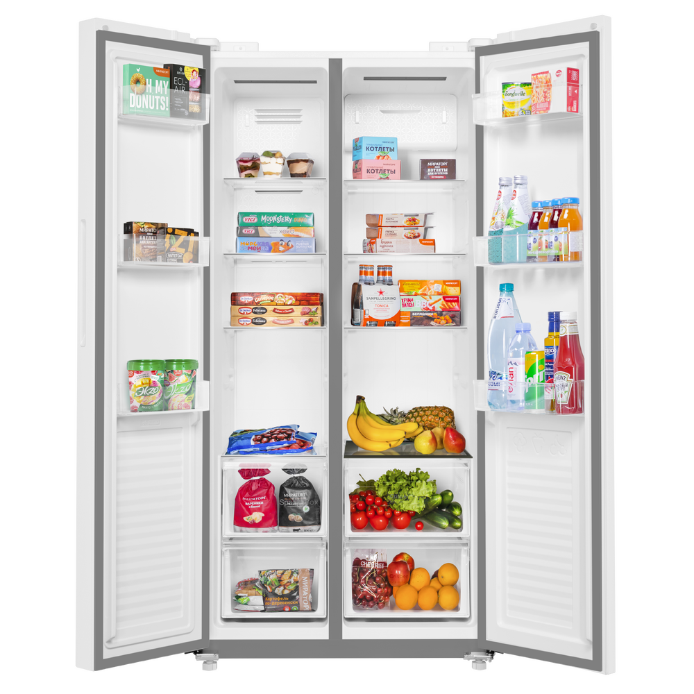 Холодильник Maunfeld MFF191NFPW - это современное устройство, которое сочетает в себе продвинутые технологии и стильный дизайн. Он является отдельностоящим устройством с двумя камерами, обеспечивающими общий объем 683 литра. Полезный объем составляет 606 литров, включая 365 литров в холодильном отделении и 170 литров в морозильном отделении. Этот холодильник отличается элегантным белым цветом и четырьмя дверями, которые добавляют ему особого шарма. Материал фасада - стекло, что придает ему современный и стильный вид. Внутренняя подсветка выполнена на светодиодах, что обеспечивает яркое и равномерное освещение. Дверной упор может быть установлен как справа, так и слева, что упрощает использование холодильника в различных условиях. Одной из ключевых особенностей является система NoFrost, применяемая как в морозильном, так и в холодильном отделении. Это обеспечивает оптимальные условия для хранения продуктов и исключает необходимость ручного размораживания. Благодаря быстрой заморозке, продукты сохр