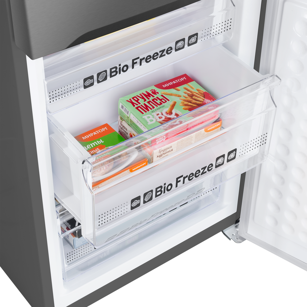 Холодильник Maunfeld MFF195NFIX10 оснащен системой NoFrost в морозильном и холодильном отделении предотвращает образование инея и обледенения, что обеспечивает стабильную работу прибора и экономит время на его обслуживание. Суперохлаждение и суперзаморозка позволяют быстро охладить или заморозить продукты, сохраняя их свежесть и полезные свойства. Электронное управление с сенсорными переключателями и дисплеем обеспечивает простоту и удобство использования. Функция "Отпуск" позволяет снизить энергопотребление прибора в периоды его неактивности. Антибактериальный фильтр обеспечивает чистоту и безопасность хранения продуктов, а звуковая индикация открытой двери помогает избежать ненужного охлаждения. Внутренняя подсветка на светодиодах обеспечивает яркое и равномерное освещение, благодаря чему вы легко найдете нужный продукт. Количество полок в холодильном отделении - 4, выполненные из закаленного стекла, что обеспечивает их прочность и долговечность. Есть также 1 ящик для овощей и фруктов и 4 полки на двери