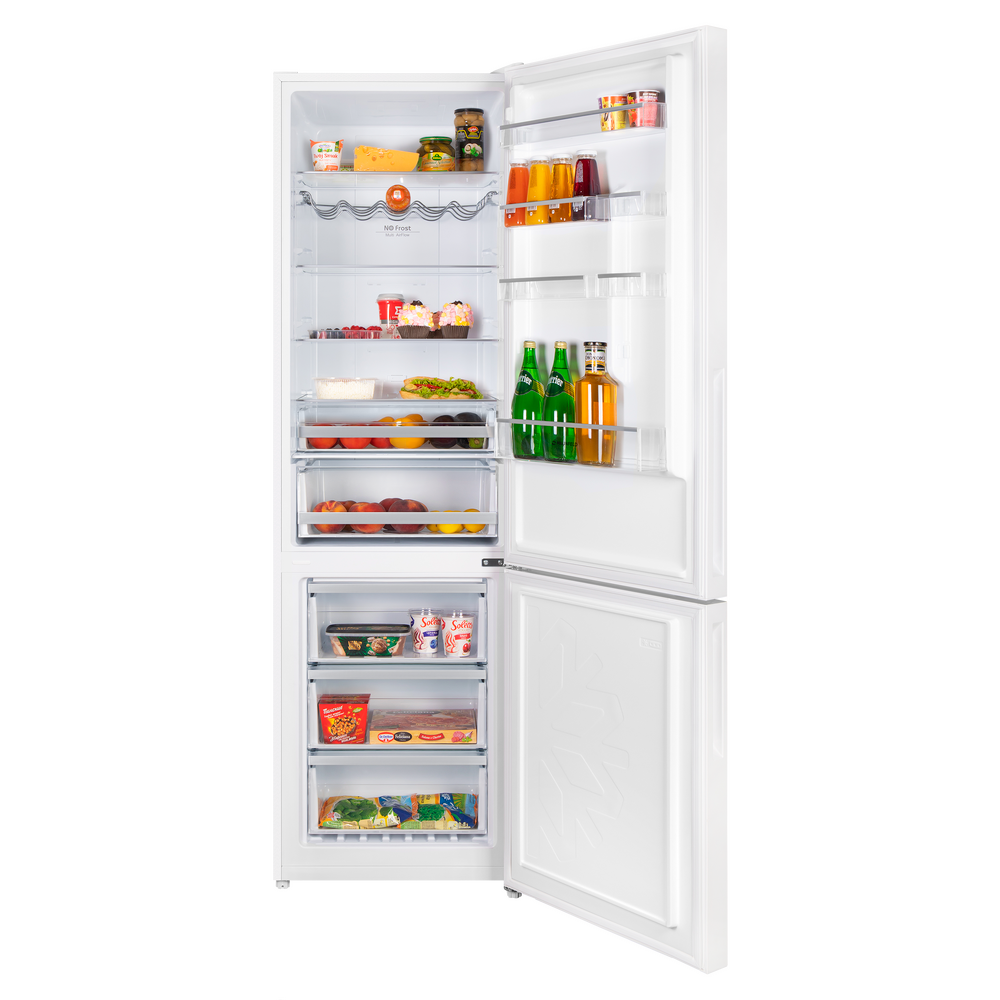 Холодильник Maunfeld MFF200NFW представлен в белом цвете и имеет габариты 59,5×200×63,5 см. Такая модель дополнит вашу кухню или другое помещение, а также подчеркнет индивидуальность. В его основу положен надежный и экономичный инверторный компрессор, соответствующий классу А+. Классификация по уровню энергопотребления дает объективное представление о том, насколько эффективно устройство расходует данный ресурс. «Суперзаморозка» позволяет понизить температуру в морозильном отделении до минимума и удерживать ее на этом уровне в течение продолжительного времени. Благодаря этому, помещенные внутрь продукты замораживаются быстро и равномерно, а значит, лучше сохраняют свою структуру и содержащиеся в них полезные вещества и витамины. Ко встроенным настройкам холодильника Maunfeld MFF200NFW относится функция «Отпуск», которая полезна, если требуется надолго отлучиться из дома или квартиры. Во время ее действия холодильное отделение останавливается, работает только морозильная камера. Система NoFrost — кон