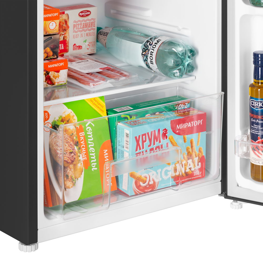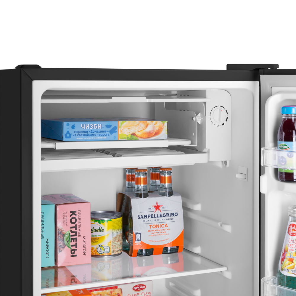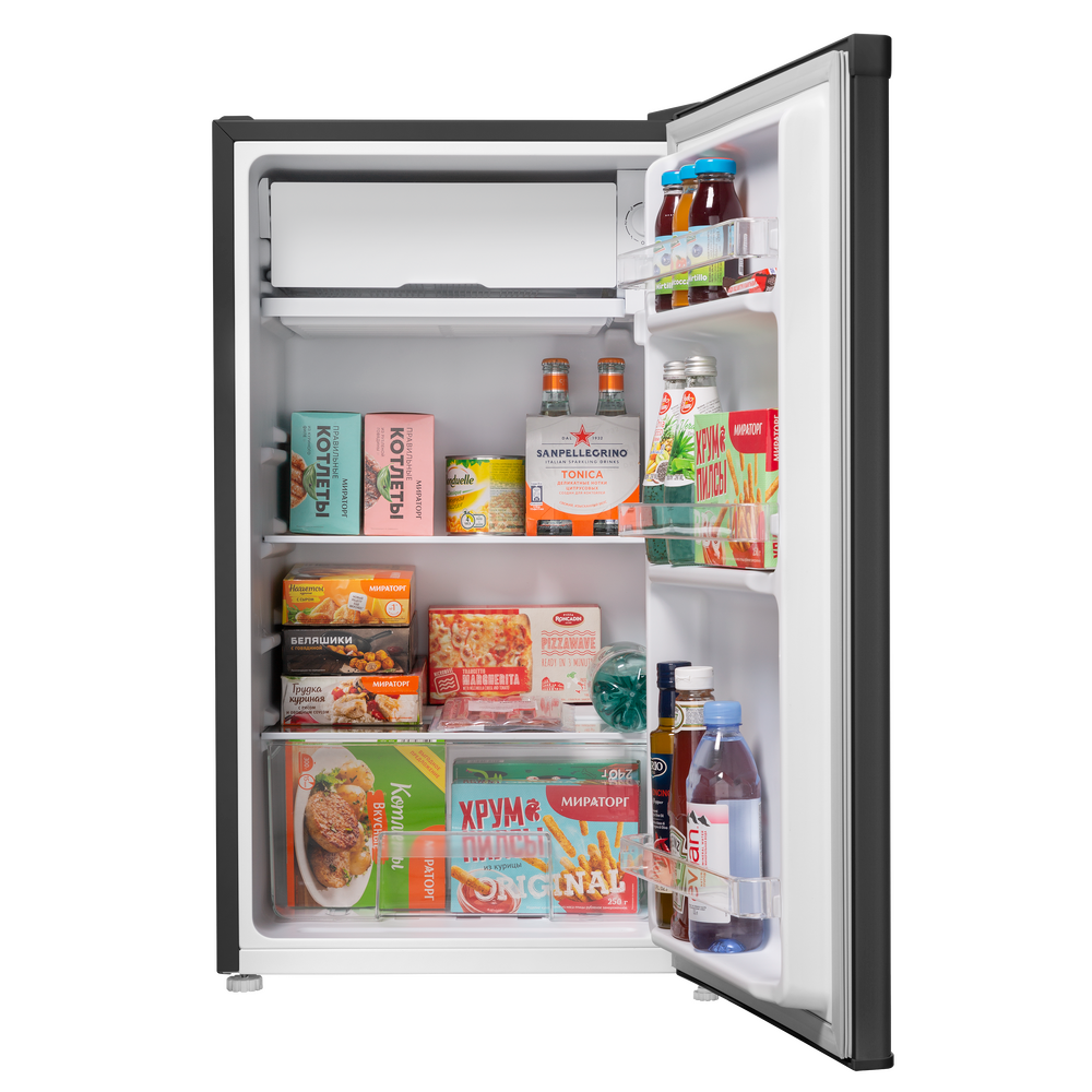 Холодильник Maunfeld MFF83B — это стильное и функциональное решение для хранения продуктов питания. С его помощью вы сможете поддерживать оптимальные условия и сохранять свежесть своих продуктов на длительное время. Дизайн и внешний вид: Имеет элегантный и современный дизайн, который прекрасно впишется в любой интерьер. Благодаря компактным размерам (высота 83.1 см, ширина 47.4 см, глубина 44.7 см) и удобному наполнению прибор гарантирует оптимальное использование пространства. Хранение продуктов: Общий объем рабочей камеры 92 литра, из них 7 л — это морозилка. Холодильное отделение оборудовано 2 полками из закаленного стекла и ящиком для овощей и фруктов, который поможет сохранить свежесть и качество на долгое время. Основные характеристики: Прибор оснащен современной системой охлаждения, которая обеспечивает равномерное распределение холода по всему внутреннему пространству. Это гарантирует стабильную температуру и предотвращает