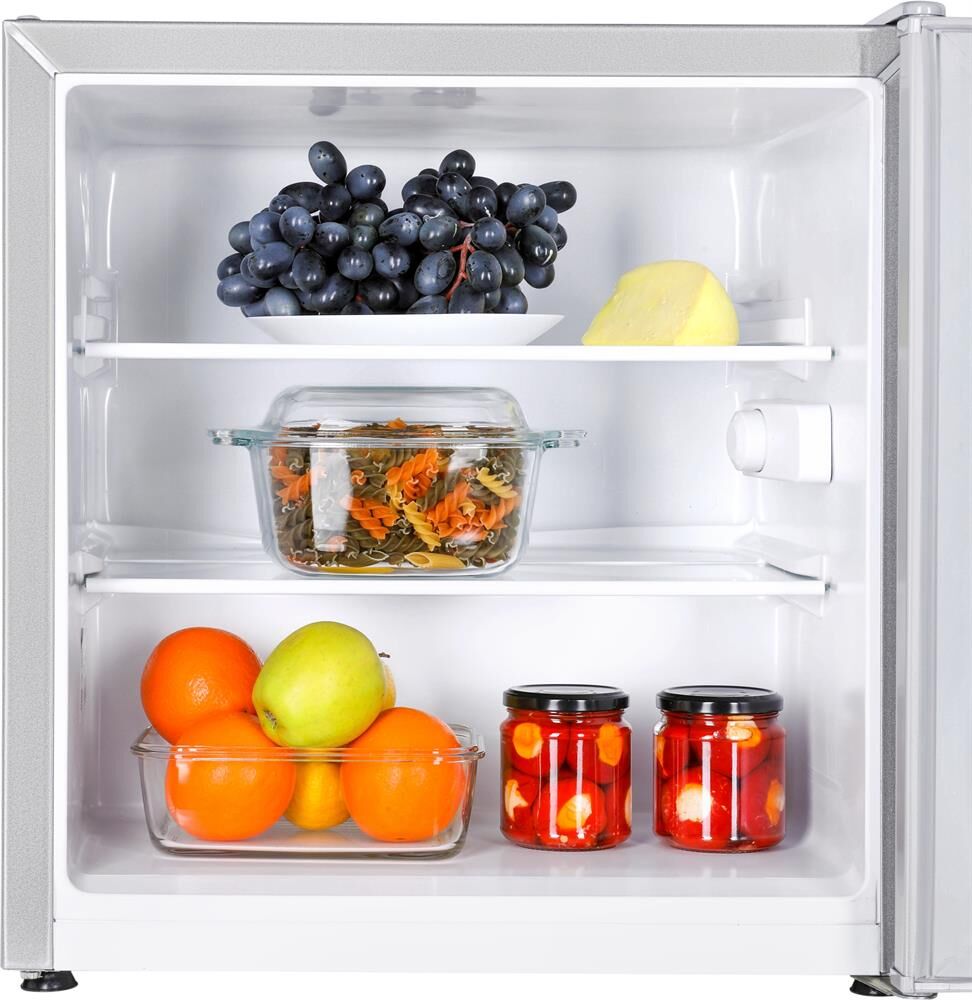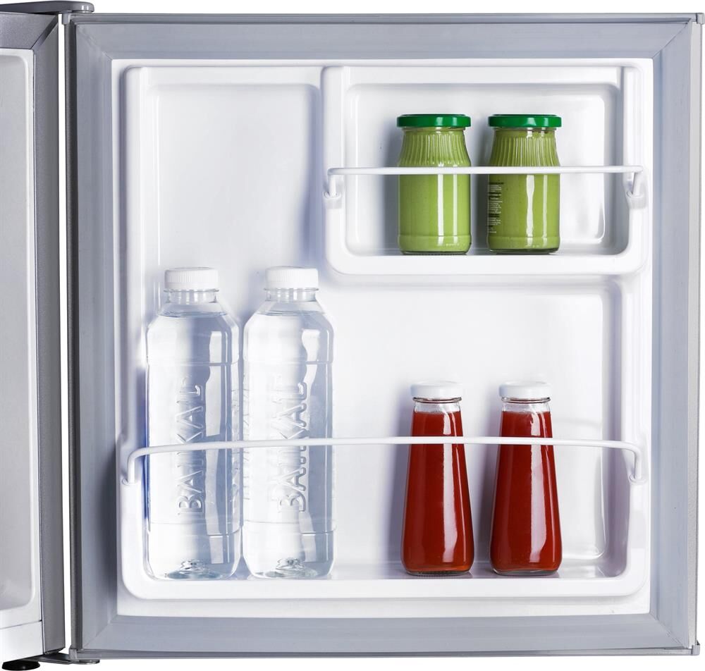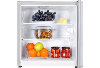 1-камерный, 60 л, класс А+, 1 полка стекло, ручная система оттаивания, 52,5х50х48 см, цвет: серебристый