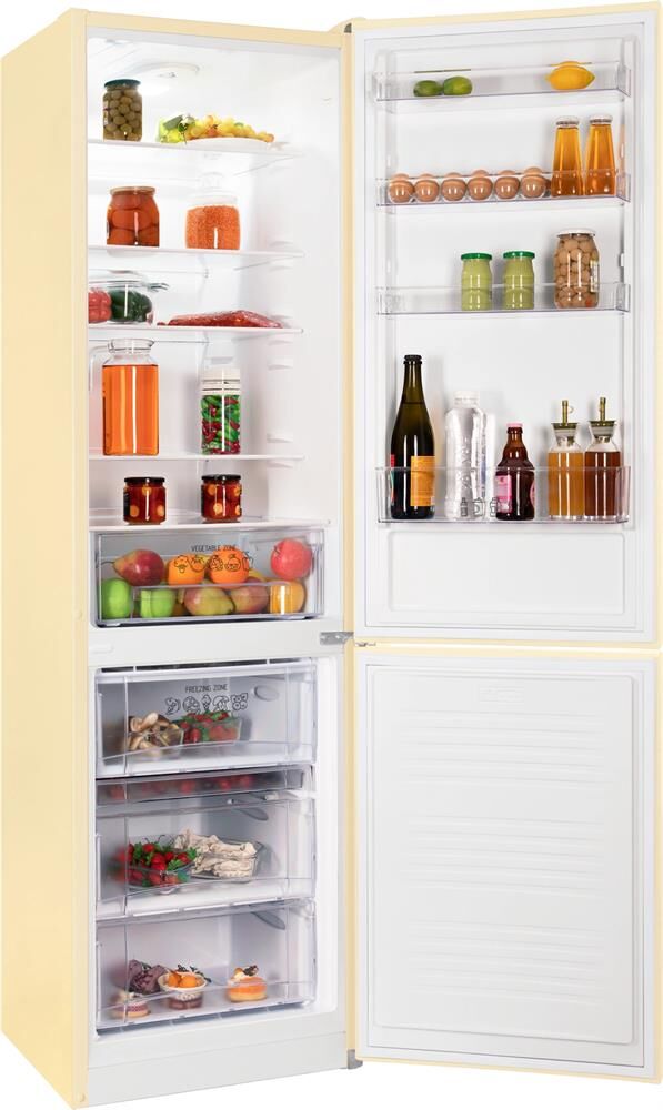 2-камерный, 353 л (ХК 238 л + МК 115 л), класс А+, LED-освещение, МК внизу, 5 полок стекло, выдвижной овощной ящик, 3 отделения в МК, 1 лоток для ягод, автоматическая система оттаивания, 203х57х62,5 см, цвет: бежевый