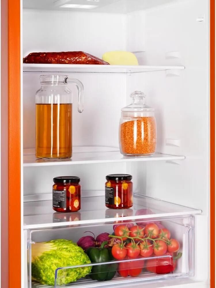 Двухкамерный отдельностоящий холодильник NORDFROST NRB 161NF с нижним расположением морозильной камеры имеет общий объем 275 л. Модель выполнена в стильном и лаконичном дизайне. Холодильник высотой 172 см подойдет в интерьер, как современной, так и классической кухни. Модель с системой охлаждения Frost Free сочетает капельную систему оттаивания в холодильном отделении и систему размораживания No Frost в морозильном. Воздух, циркулирующий в камерах, не смешивается, благодаря чему показатели температуры и влажности остаются неизменными и комфортными для лучшего сохранения продуктов. Морозильная камера объемом 105 л имеет мощность заморозки до 3,5 кг в сутки. На стенках морозильника не образовывается наледь и иней, что навсегда избавит пользователя от ручного размораживания. Холодильник характеризуется высоким классом энергоэффективности А+ и низким уровнем шума до 41 дБ. Холодильник оснащен LED-освещением в холодильной камере, которое не выделяет тепло во внутреннее пространство холодильника, а также отличается