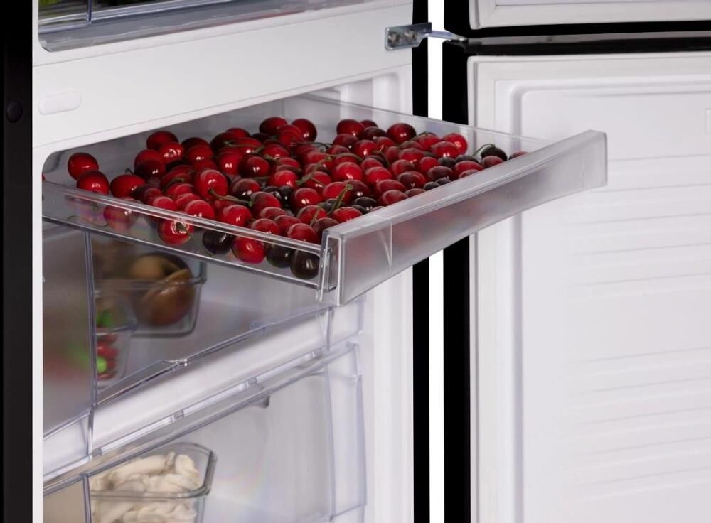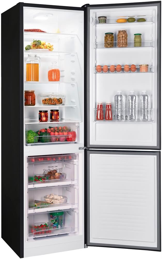 (ВхШхГ)203.4 х 57.4 х 62.5см.Цвет черный.Общий объем, л343.Объем холодильной камеры (ХК), л238 Объем морозильной камеры (МК), л105.Класс энергоэффективности A+.Температура в ХК 0°С...+8°С Количество полок ХК 5.Температура в МК не выше -18°С.Количество выдвижных ящиков в МК 3.Лоток для ягод в МК 1.Система оттаивания МК NO FROST.Производительность замораживания, кг/сут 3,5 Хладагент R600a (изобутан).Суточный расход электроэнергии, кВт.час 0,857.Уровень шума, дБ 41.Перенавешиваемые двери.Ручки интегрированные горизонтальные.Испаритель запененный.