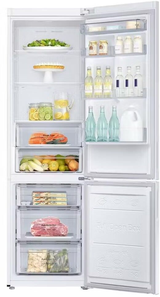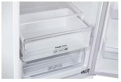 Холодильник с нижней морозильной камерой белый. Общий объём 367л. Габариты В/Ш/Г 2010/595/647мм. Объем холодильной/морозильной камеры 269/98 л. Тип ручки открывания утопленная. Внешний цифровой дисплей. Система No Frost в холодильном и морозильном отделении. Освещение LED. Отделение "зона свежести". Звук.сиг. двери холод.к-ры. Компрессор инверторный. Климатический класс SN, N, ST, T. Мощность замораживания (кг/сут), 12кг. Вес 71кг.