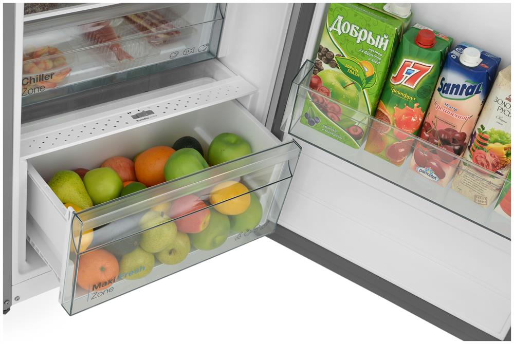 Объём: 404л/380л, No Frost Cooling Tech, Зона свежести с системой Humidity Control, Нулевая зона, Суперохлаждение, LED TOP and SIDE LIGHTS, Горизонтальная полка для хранения напитков, Zero Clearance, Сигнал открытой двери, Тип управления: Электронный, Полки стекло, Двери перенавешиваемые, Годовое электропотребление 169кВт/ч, Класс энергопотребления А+, Климатический класс: SN-T (от +10°С до +43°С), Цвет: Нержавеющая сталь, Гарантия: 1 год