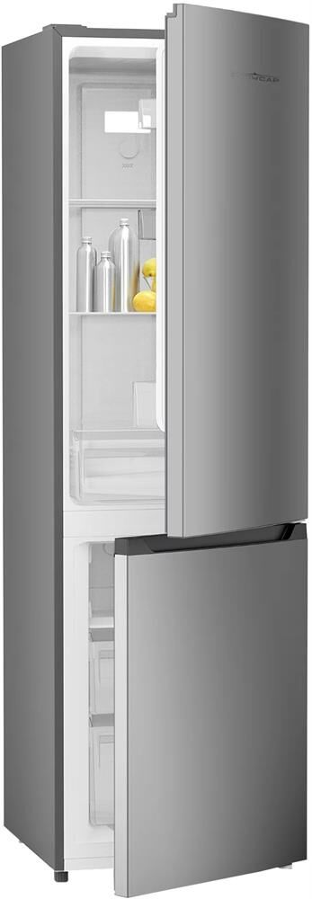 Двухдверный холодильник серии COMBI, морозильная камера снизу. No Frost, полезный объем 237 (182+55) литров, А+ класс, 42 дБ, R600а, N-ST, LED подсветка, потребление энергии 256 кВт/год, мощность замораживания 2,5 кг/сутки. Холодильное отделение: 3 полки из стекла, 3 боковых полки, 1 большой ящик для овощей и фруктов. Морозильное отделение: 2 выдвижных ящика, 1 лоток с легким доступом. Вес нетто и брутто 51 и 55 кг, цвет нержавеющая сталь. Регулируемые ножки, перенавешиваемые двери, интегрированные ручки.