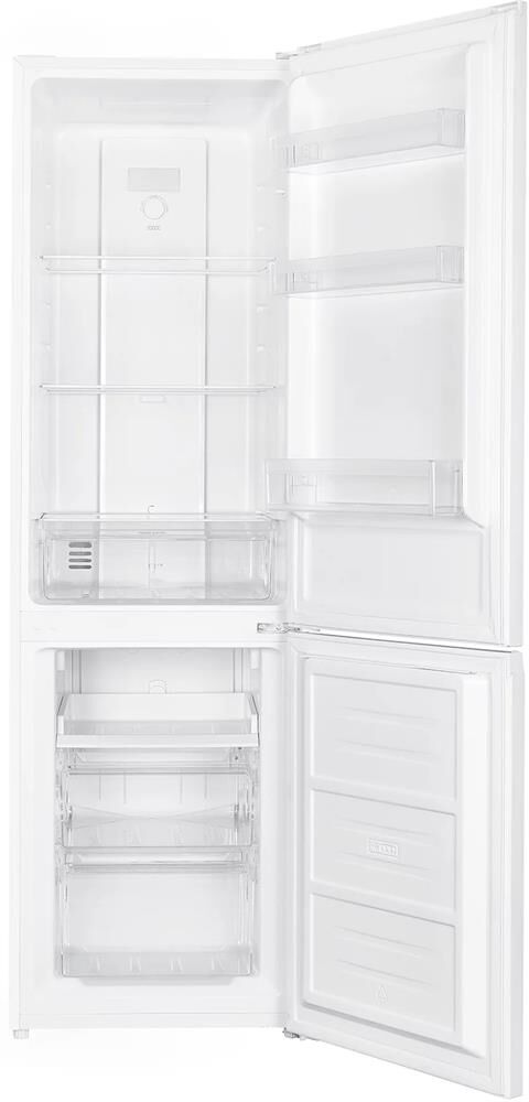 Двухдверный холодильник серии COMBI, морозильная камера снизу. No Frost, полезный объем 237 (182+55) литров, А+ класс, 42 дБ, R600а, N-ST, LED подсветка, потребление энергии 256 кВт/год, мощность замораживания 2,5 кг/сутки. Холодильное отделение: 3 полки из стекла, 3 боковых полки, 1 большой ящик для овощей и фруктов. Морозильное отделение: 2 выдвижных ящика, 1 лоток с легким доступом. Вес нетто и брутто 51 и 55 кг, цвет белый. Регулируемые ножки, перенавешиваемые двери, интегрированные ручки.