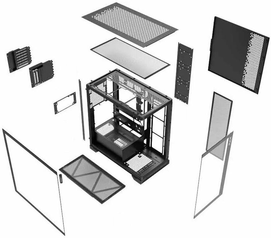 Корпус XPG INVADER X BLACK (INVADERXMT-BKCWW) Mid-Tower Gaming ATX PC Case with Panoramic View, Tempered Glass Panels, and RGB Lighting Black