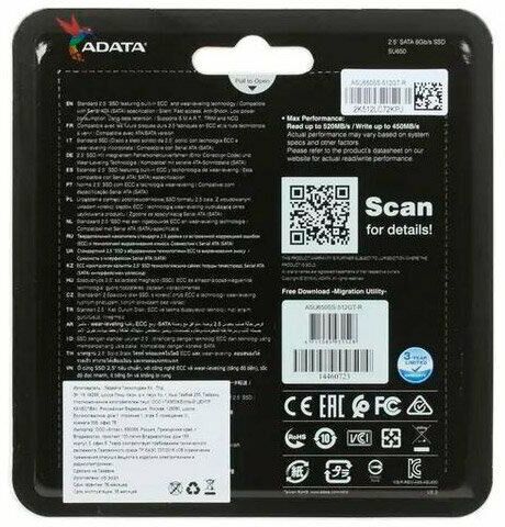 Жесткий диск 2.5" ADATA SSD жесткий диск SATA2.5 512GB NAND FLASH ASU650SS-512GT-R