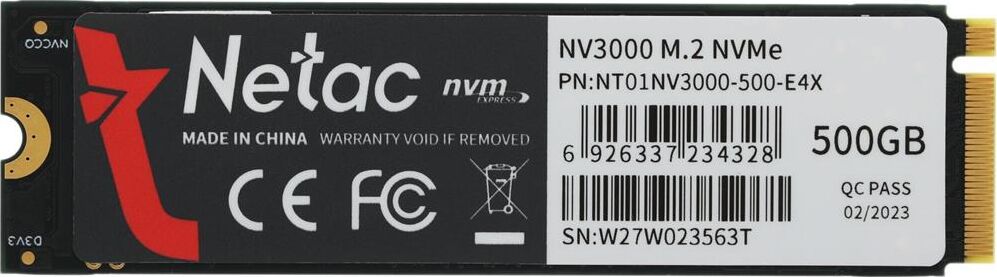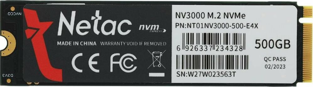 Жесткий диск 2.5" NETAC Накопитель SSD M.2 2280 500GB NVME NT01NV3000-500-E4X