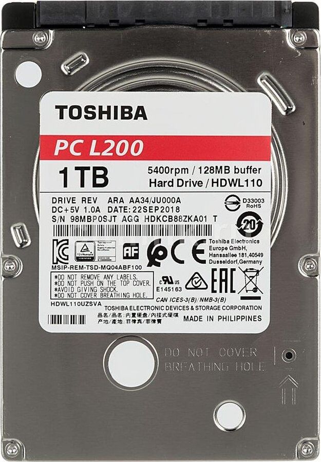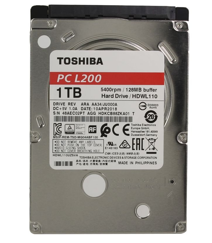 Жесткий диск 2.5" TOSHIBA L200 Slim HDWL110UZSVA, 1ТБ, HDD, SATA III, 2.5"