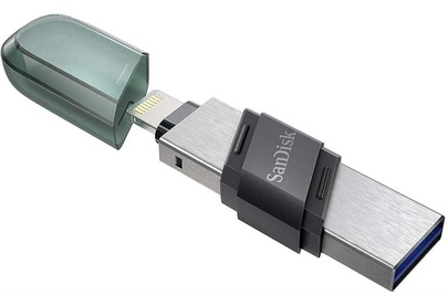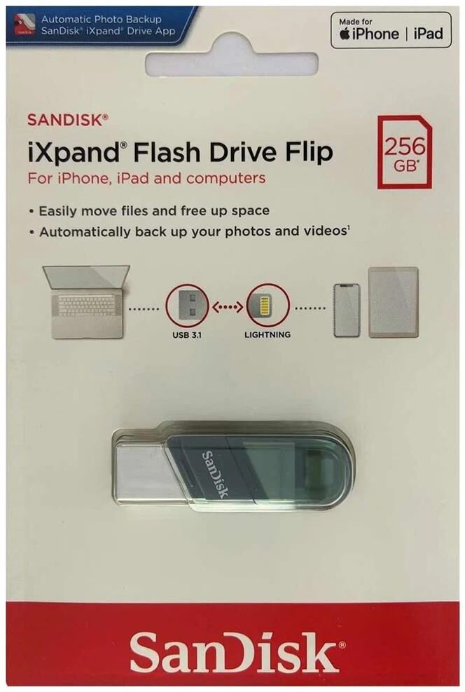 Жесткий диск 3.5" SanDisk Флеш-накопитель 128 Gb iXpand Flash Drive Flip, разъем USB-A/Lightning. Цвет: серебристый