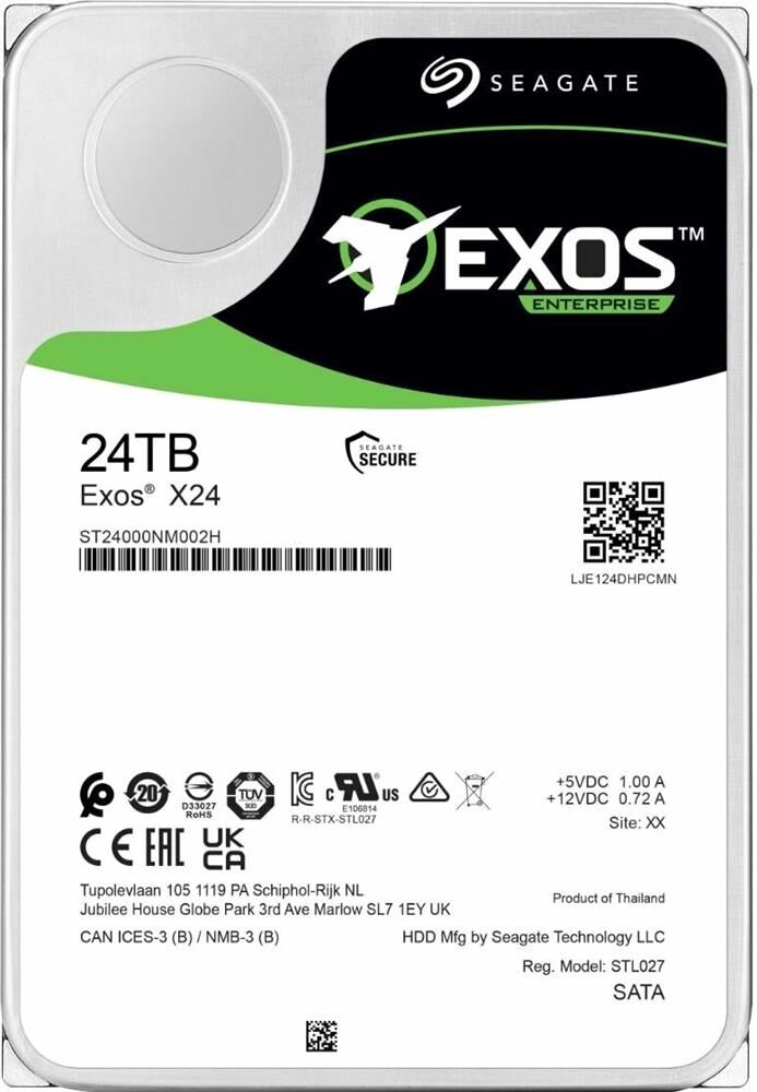 Жесткий диск 3.5" SEAGATE Жесткий диск Exos X24 ST24000NM002H, 24ТБ, HDD, SATA III, 3.5"