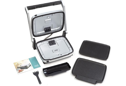 Контактный гриль Мощность: 2000 Вт Напряжение: 220-240В, 50/60Гц Сенсорная панель управления на ручке 7 автоматических программ 4 степени прожарки стейка 2 съемные жарочные панели 30х25см Антипригарное покрытие панелей Съёмный поддон для сбора жира Авторегулировка высоты верхней панели Материал корпуса: металл