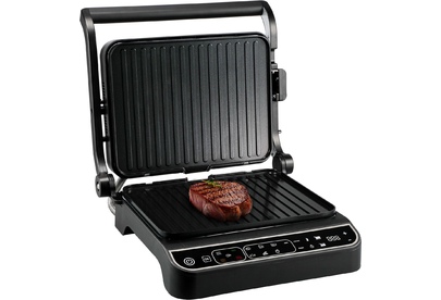 Контактный гриль Мощность – 2000 Вт Напряжение – 220-240 В, 50/60 Гц Управление – сенсорное Дисплей – есть Кол-во программ – 7 Жарочные панели – съемные, 2 штуки Антипригарное покрытие панелей – есть Съемный поддон для жира – есть Скребок для чистки гриля – есть