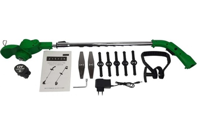 Триммер аккумуляторный ZITREK GreenCut 12 компактная аккумуляторная триммер модель, удобная для скашивания травы в труднодоступных местах, вдоль заборов, клумб, подравнивания газонов, краев садовых дорожек. Оснащен литий-ионным аккумулятором напряжением 12 В. Электрический двигатель мощностью 500 Вт развивает до 9000 об/мин без нагрузки. Особенности • Телескопическая штанга с возможностью поворота режущей головки. • Режущий элемент — пластиковый и металлический нож. • Небольшой вес обеспечивают комфорт при работе. • Аккумулятор и зарядное устройство входят в комплект поставки.