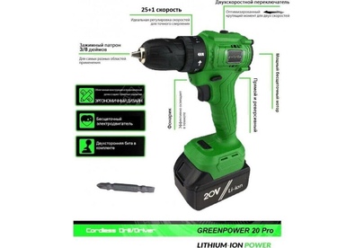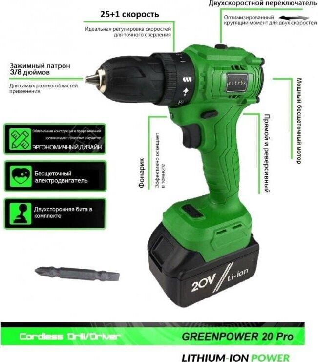 ZITREK Greenpower 20 Pro (20В, Li-ion аккум. 2шт, ЗУ, кейс, бита) 063-4061