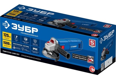 ЗУБР 1500 Вт, d125 мм, УШМ, Профессионал (УШМ-П125-1500 ПСТ)