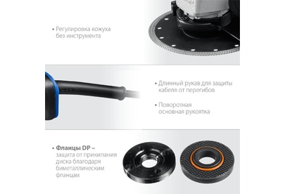 Мощность, Вт: 2000 Диаметр диска, мм: 180 Посадочный диаметр, мм: 22.2 Max число оборотов, об/мин: 8000 Быстрозажимная гайка SDS: нет Электр. регулировка оборотов: нет Длина кабеля, м: 3 Вес, кг: 5,4 Габариты, мм: 510х165х290 Суперфланец: есть Блокировка шпинделя при заклинивании диска: нет Защита от непреднамеренного пуска: есть Наличие виброручки: нет Плавный пуск: есть Поддержание постоянных оборотов под нагрузкой: нет Серия: Профессионал КОМПЛЕКТАЦИЯ: Углошлифовальная машина - 1 шт. Кожух защитный - 1 шт. Рукоятка дополнительная - 1 шт. Ключ специальный - 1 шт. Руководство по эксплуатации - 1 экз.
